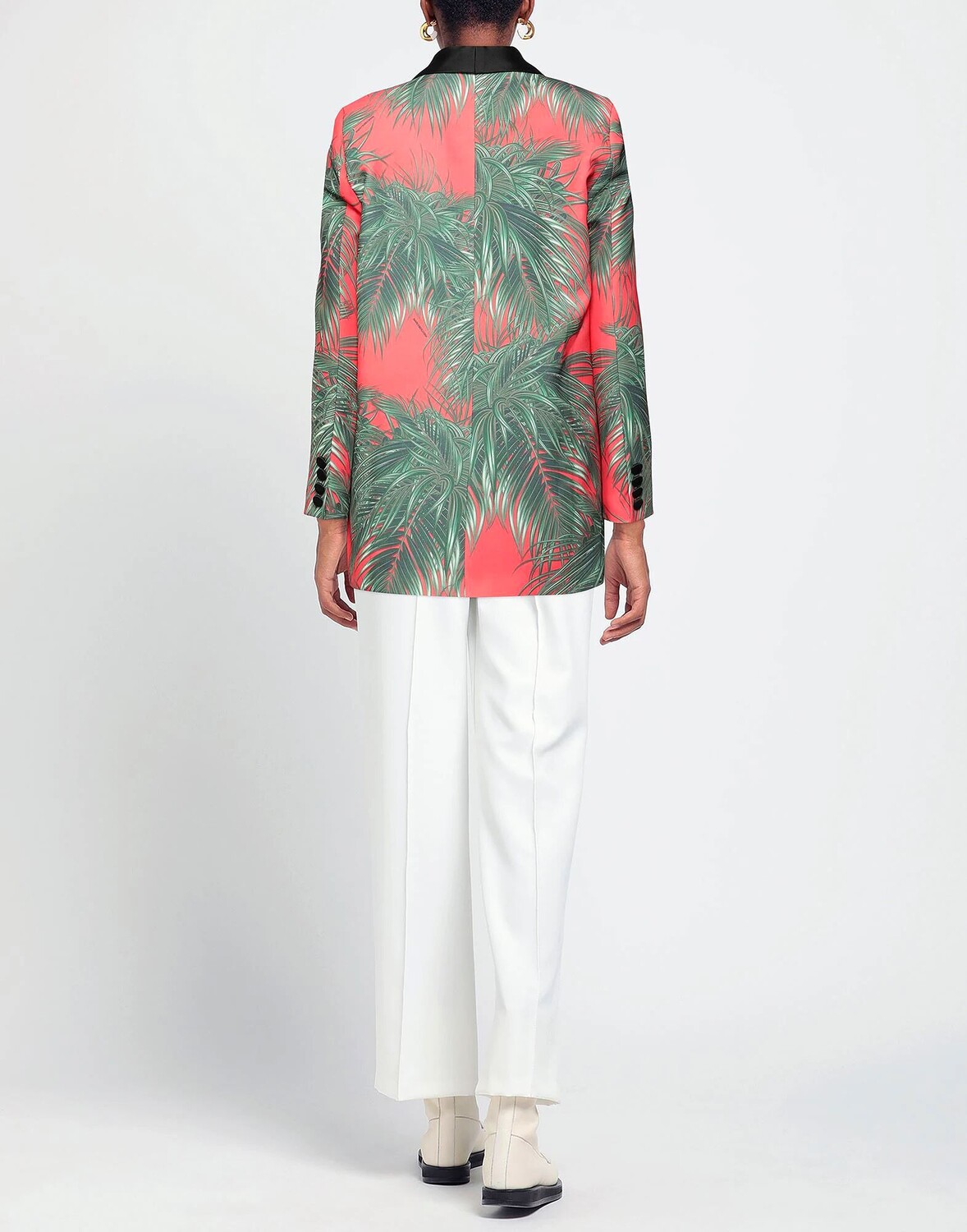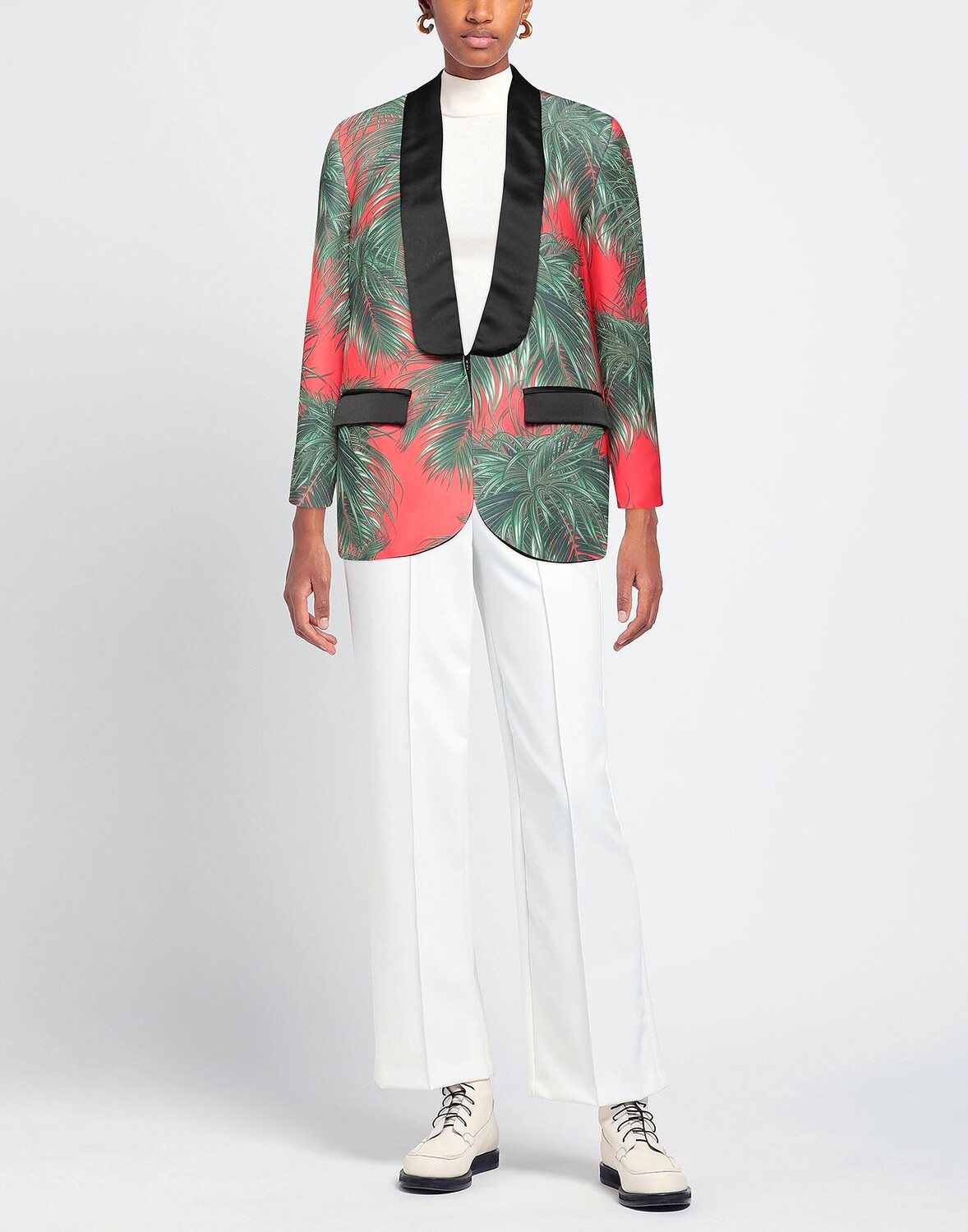 Атлас, джерси, логотип бренда, гавайский дизайн, воротник с лацканами, однобортный, длинные рукава, с подплечником, внутри на подкладке, застежка на крючки, множество карманов, карман с клапаном, однобортный пиджак