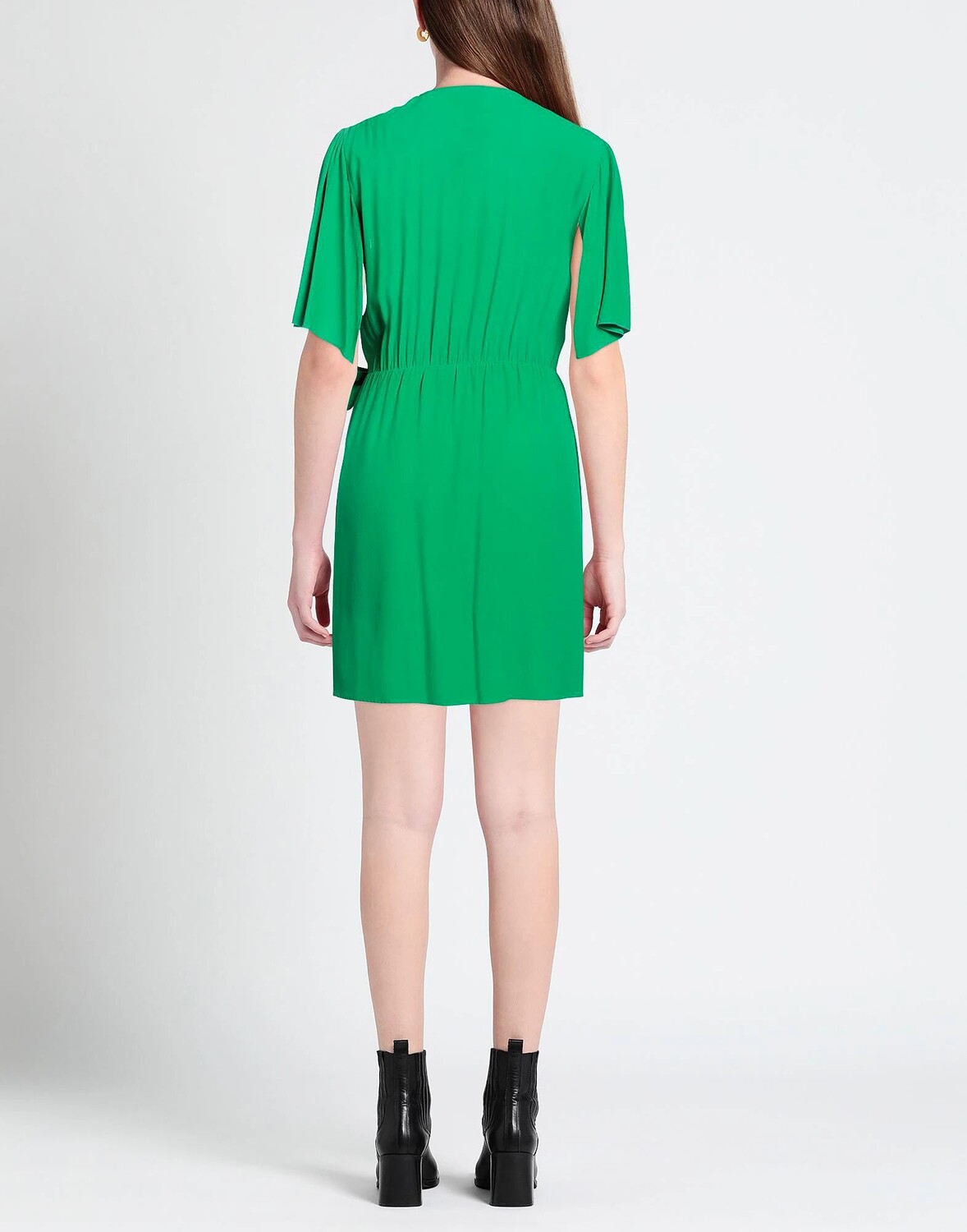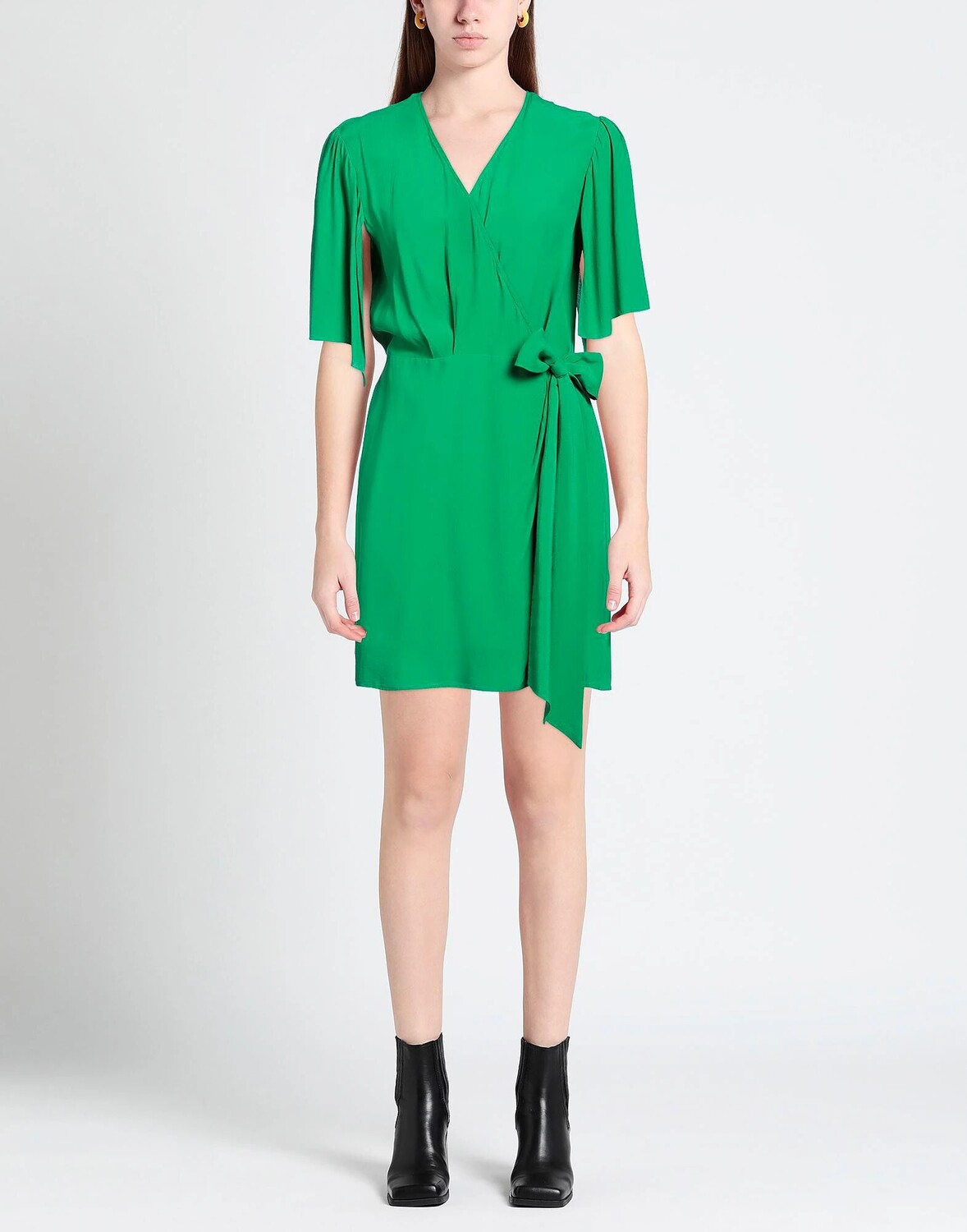 Креп, без аппликаций, одноцветное изделие, глубокий вырез, короткие рукава, без подкладки, без карманов, платье с запахом