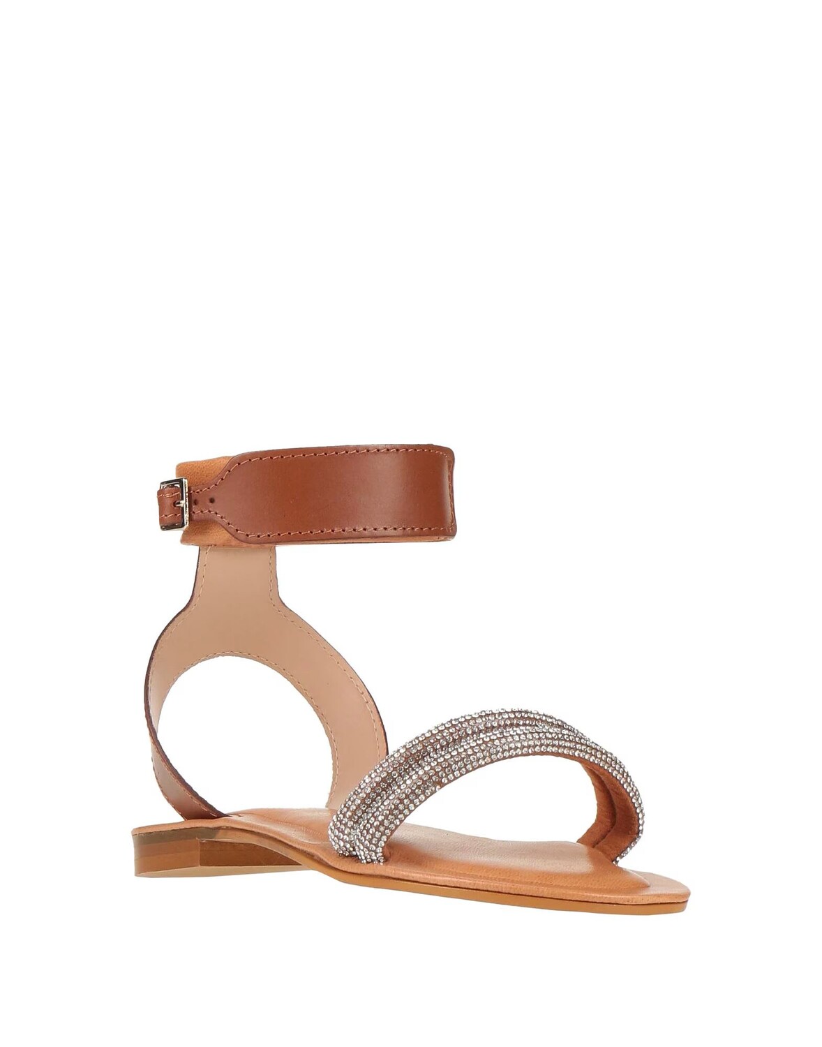 Кожа, стразы, разноцветный, подкладка из кожи, ремешок на щиколотке с пряжкой, круглый носок, без каблука, кожаная подошва, содержит нетекстильные части животного происхождения, босоножки с ремешком на щиколотке