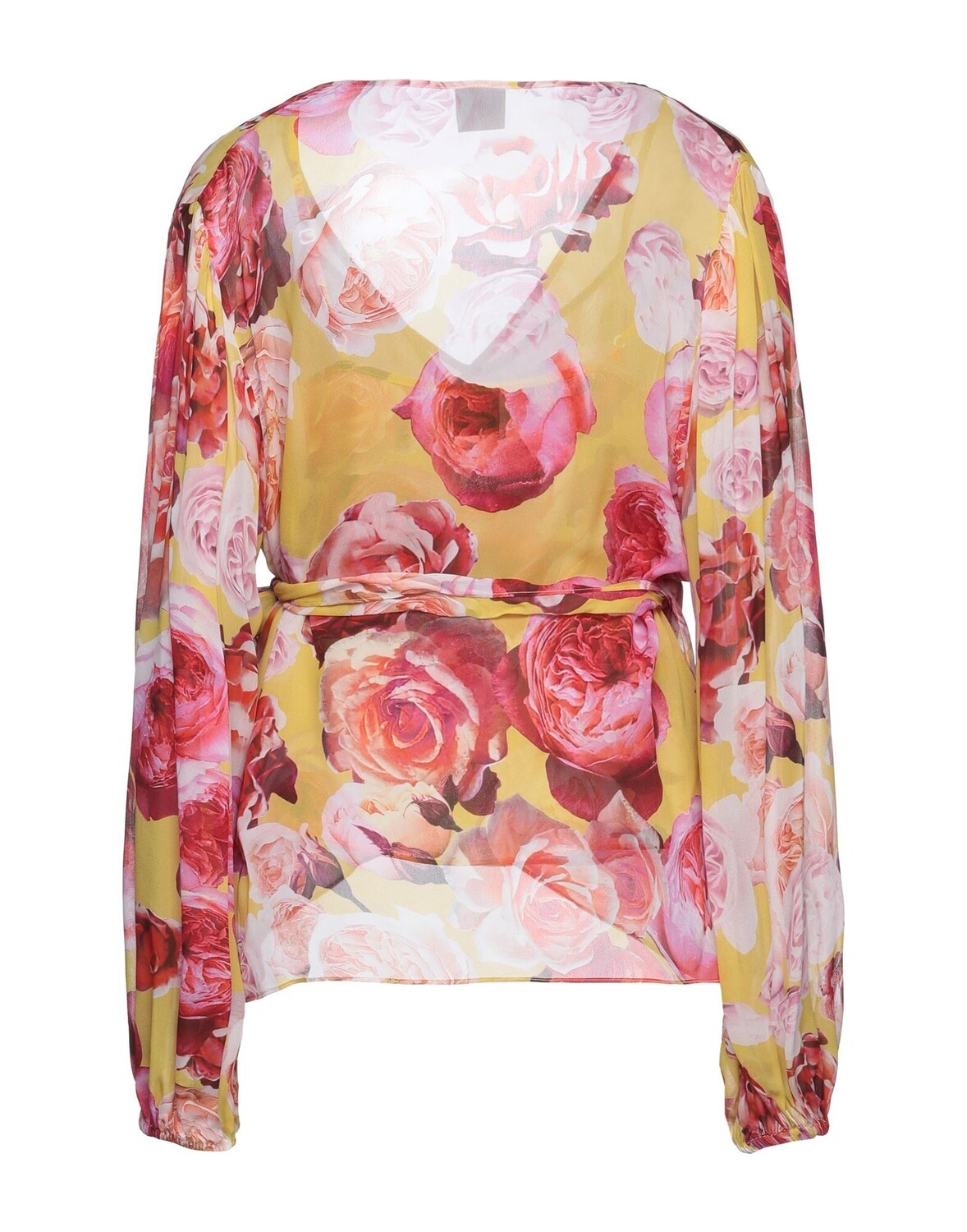Креп, цветочный дизайн, v-образный вырез, длинные рукава, без карманов, скользящая по фигуре, застежка-самозавязка, без аппликаций, эластичные манжеты