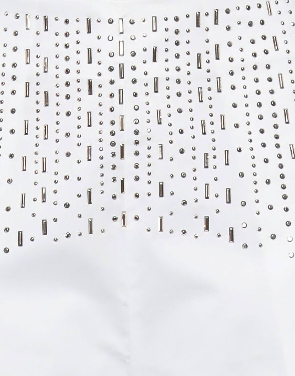 Поплин, стразы, одноцветное изделие, завышенная талия, застежка-молния, множество карманов, брюки