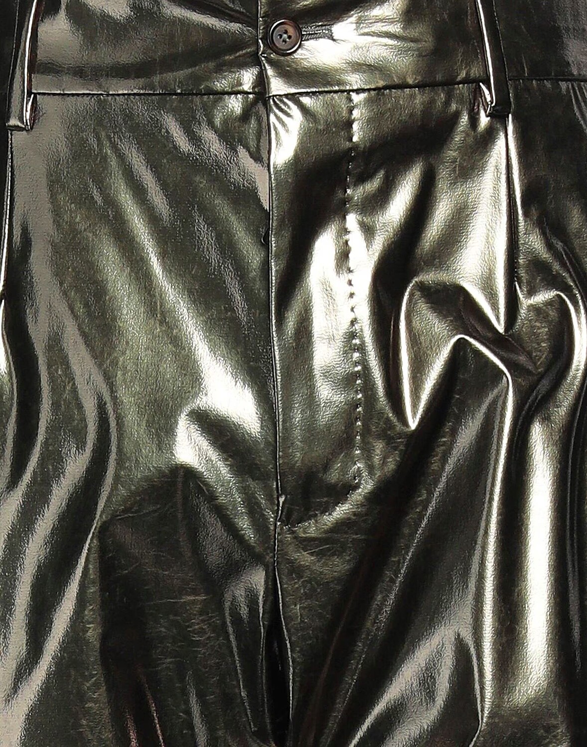 Техническая ткань, эффект ламинирования, без аппликаций, одноцветное изделие, завышенная талия, зауженные брючины, классический крой, застежка-молния, множество карманов, эластичный, индивидуальный пошив