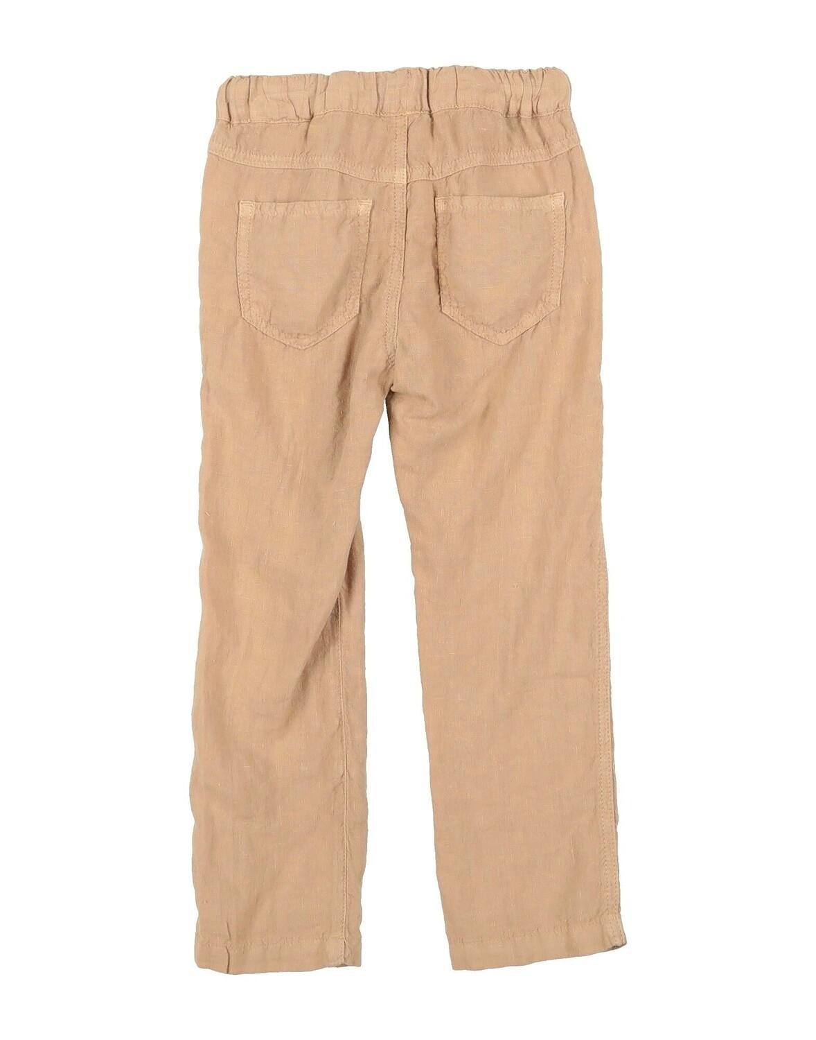 Полотняное переплетение, без аппликаций, средняя посадка, прямые брючины, стандартная посадка, застежка на шнурок, множество карманов, стирка при 30°C, химическая чистка, нельзя отбеливать, нельзя сушить в стиральной машине, гладить при температуре не выше 110°C, брюки