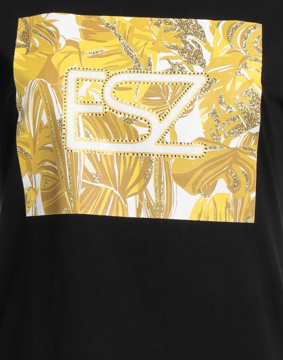 Джерси, стразы, принт с блестками, однотонное изделие с принтом, круглый воротник, короткие рукава, без карманов
