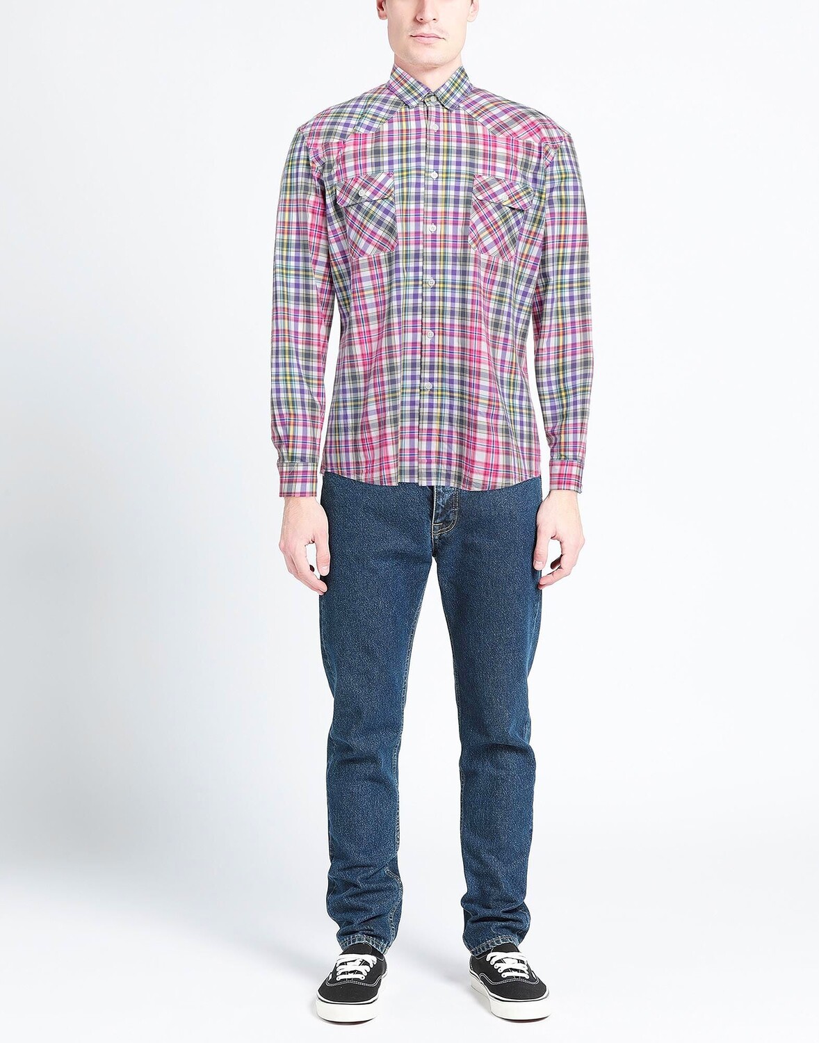 Ткань, без аппликаций, узор «тартан», классический воротник, длинные рукава, манжеты на пуговицах, застежка на пуговицы, два нагрудных кармана, рубашка приталенного кроя.