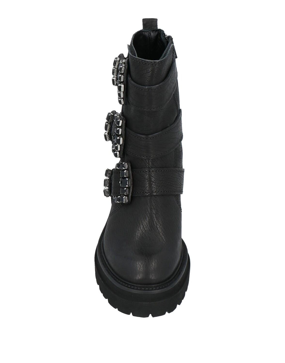 Байкерские ботильоны, шагреневая кожа, пряжка, кристаллы, одноцветное изделие с аппликациями, подкладка кожа, застежка-молния, круглый носок, квадратный каблук, подошва с выступами, содержит нетекстильные части животного происхождения