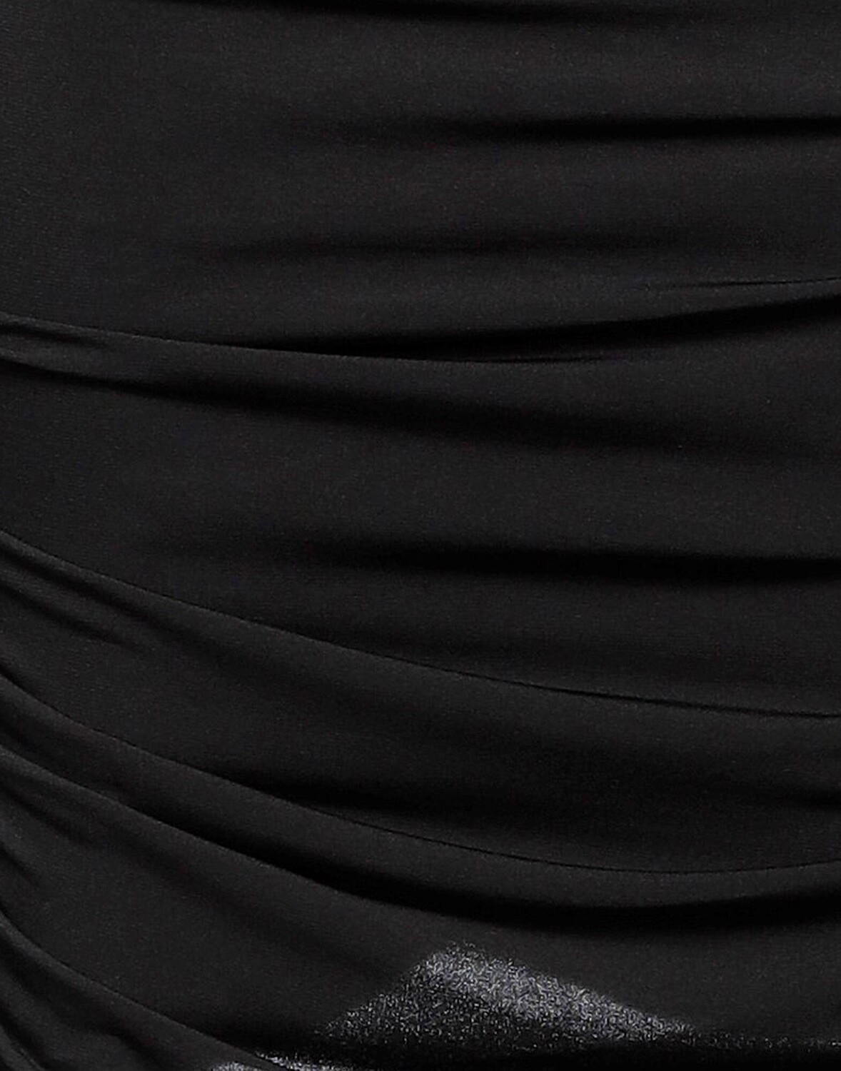 Трикотаж, присборки, логотип бренда, одноцветное изделие, глубокий вырез, без рукавов, без подкладки, застежка-молния, без карманов, облегающее платье
