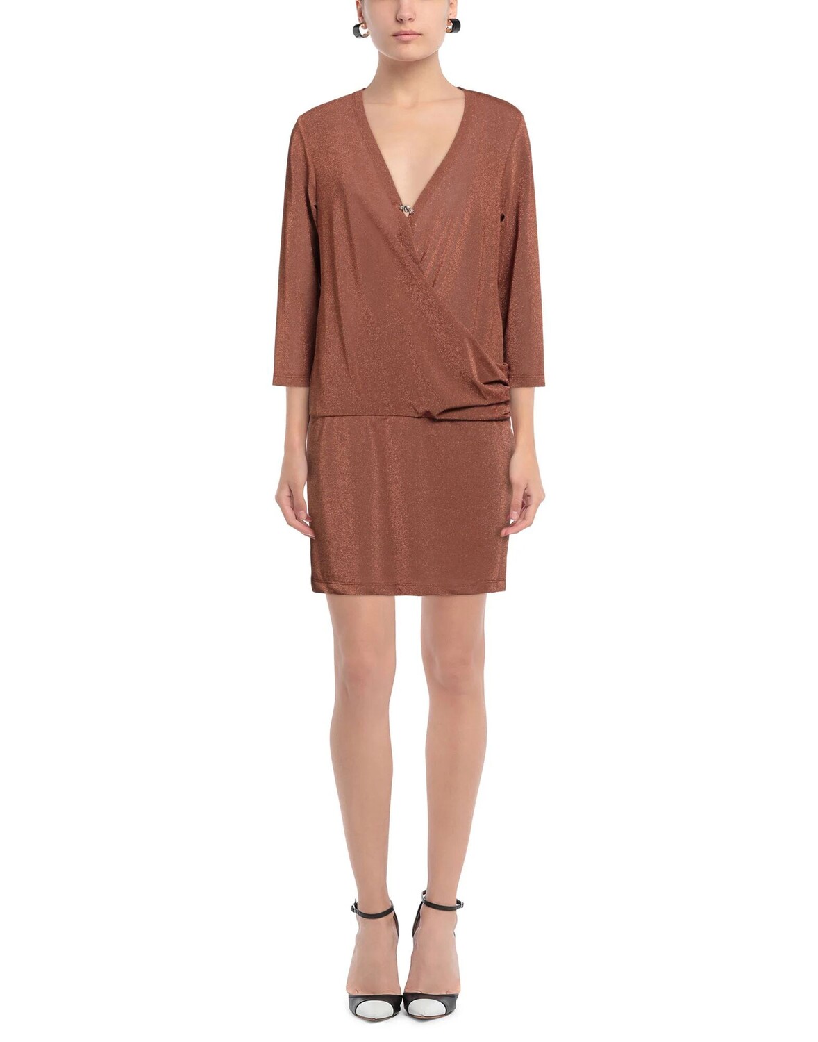 Джерси, ламе, драпированная отделка, одноцветное изделие, v-образный вырез, рукава длиной 3/4, внутренняя часть на частичной подкладке, застежка на крючки, без карманов, стрейч, платье