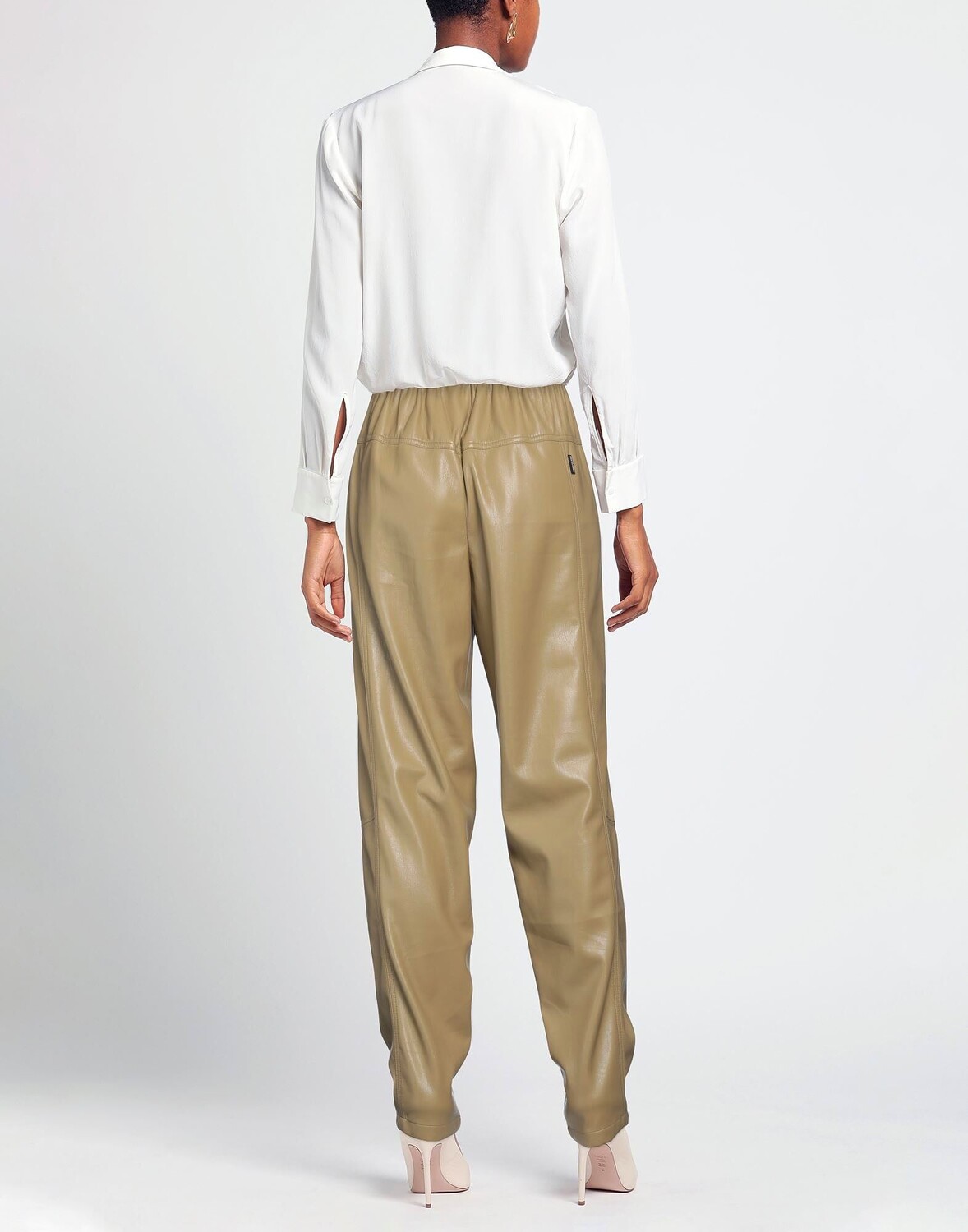 Зауженные брюки, ткань с покрытием, без аппликаций, одноцветное изделие, завышенная талия, свободный крой, застежка на шнурок, множество карманов, ручная стирка, не отбеливать, нельзя сушить в стиральной машине, нельзя гладить