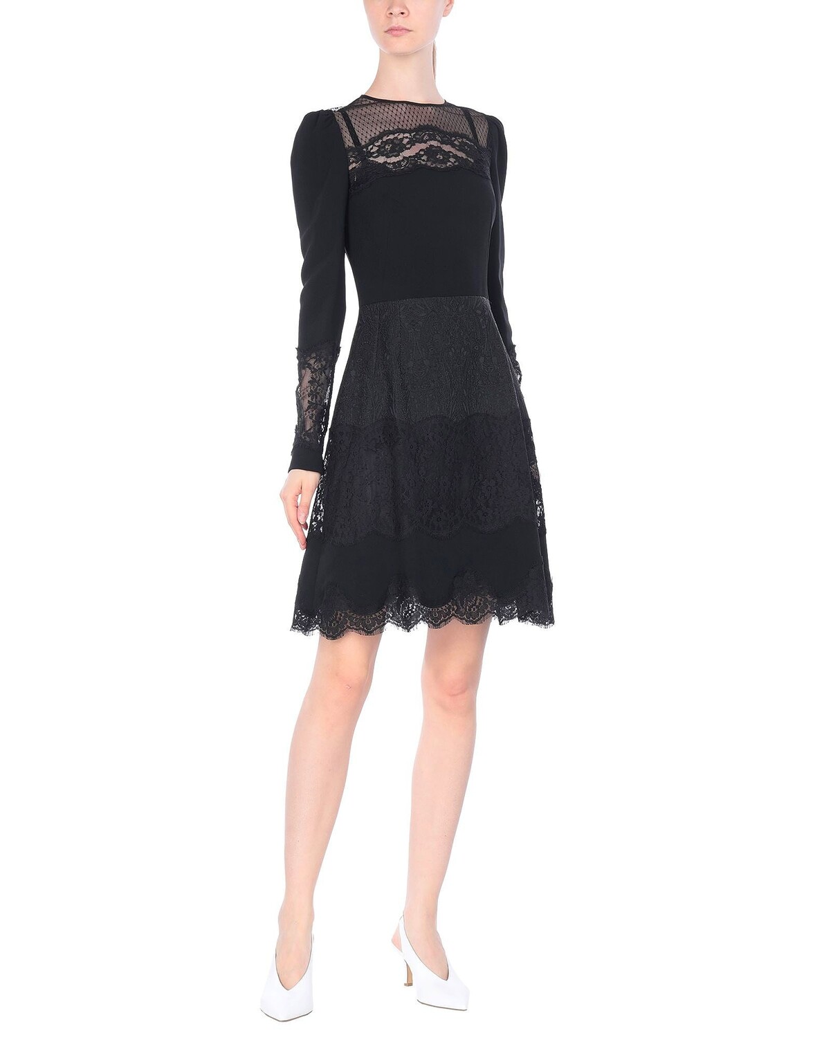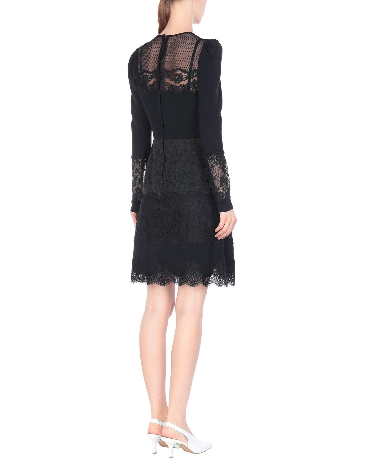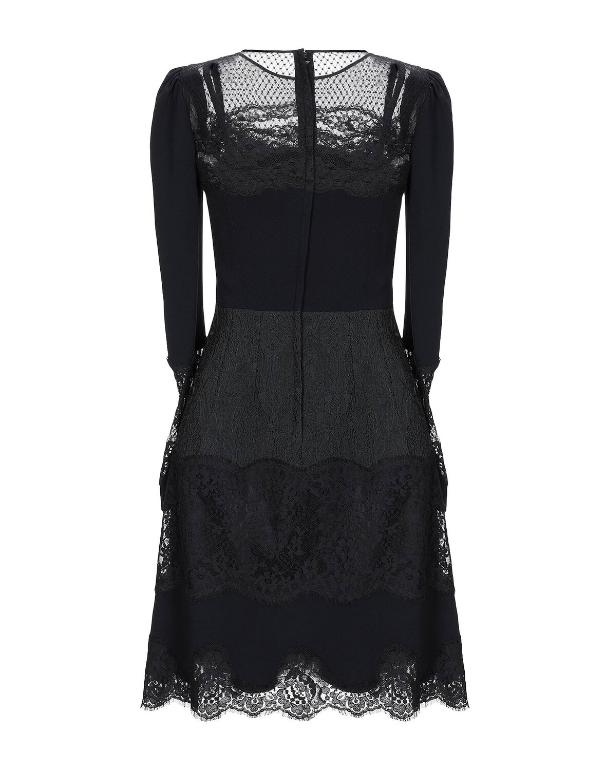 Кружево, креп, без аппликаций, однотонное изделие, круглый воротник, длинные рукава, без карманов, застежка сзади, молния, скользящий силуэт