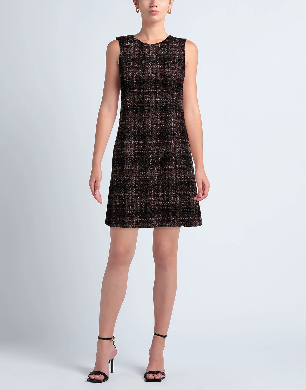 Твид, без аппликаций, разноцветный узор, круглый воротник, без рукавов, на подкладке, застежка-молния, без карманов, фасон трапеция