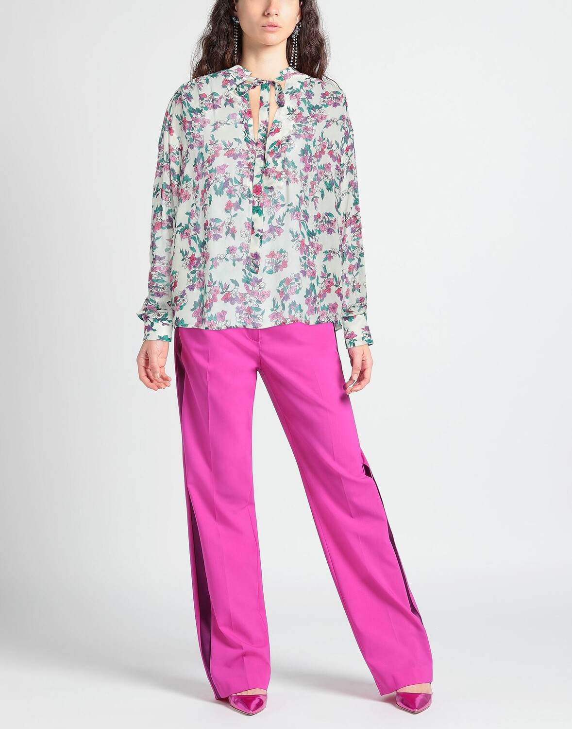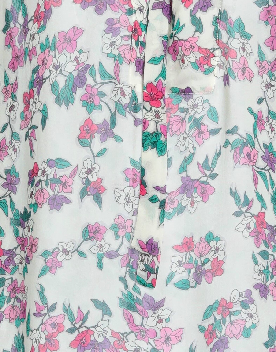 Блузка с бантом, креп, кружево, цветочный принт, вырез галстук-бабочка, длинные рукава, завязка, без карманов
