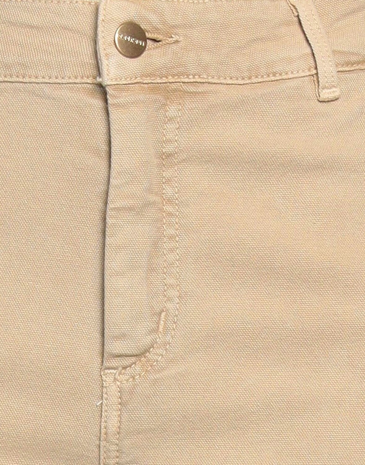 Парусина, логотип бренда, одноцветное изделие, завышенная талия, зауженная брючина, стандартная посадка, застежка-молния, пуговицы, множество карманов, карго