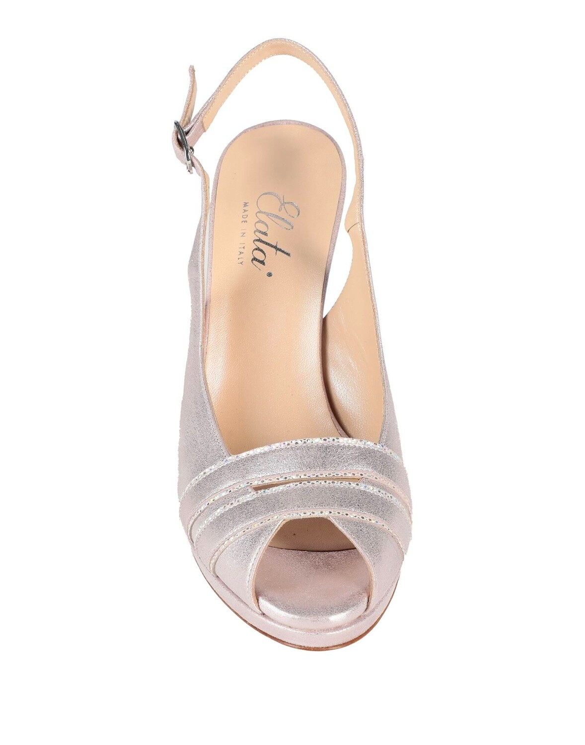 Кожа, металлик, украшение, одноцветное изделие, кожаная подкладка, застежка на пряжке, круглый носок, квадратный каблук, обтянутый каблук, кожаная подошва, содержит нетекстильные части животного происхождения, босоножки с ремешком на щиколотке