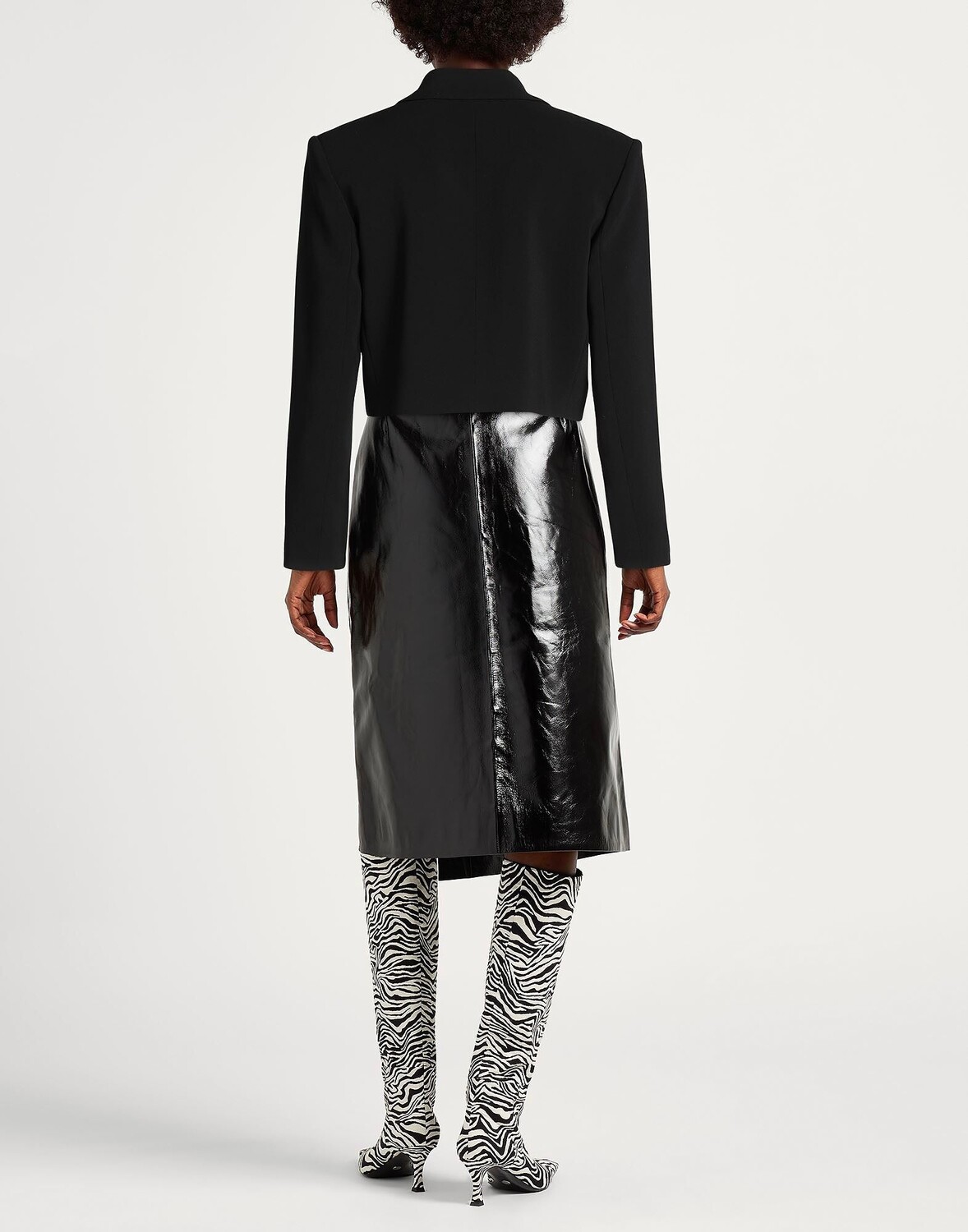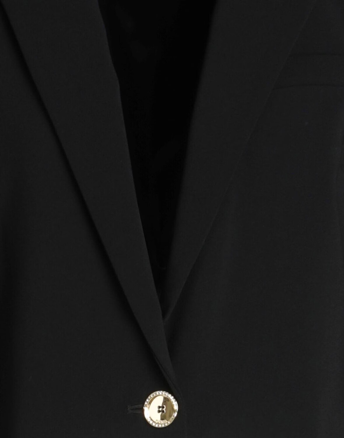 Куртка, креп, логотип бренда, одноцветное изделие, воротник с лацканами, однобортный, длинные рукава, на подкладке, 1 пуговица, без карманов, тянется, не стирать, не отбеливать, не сушить в стиральной машине