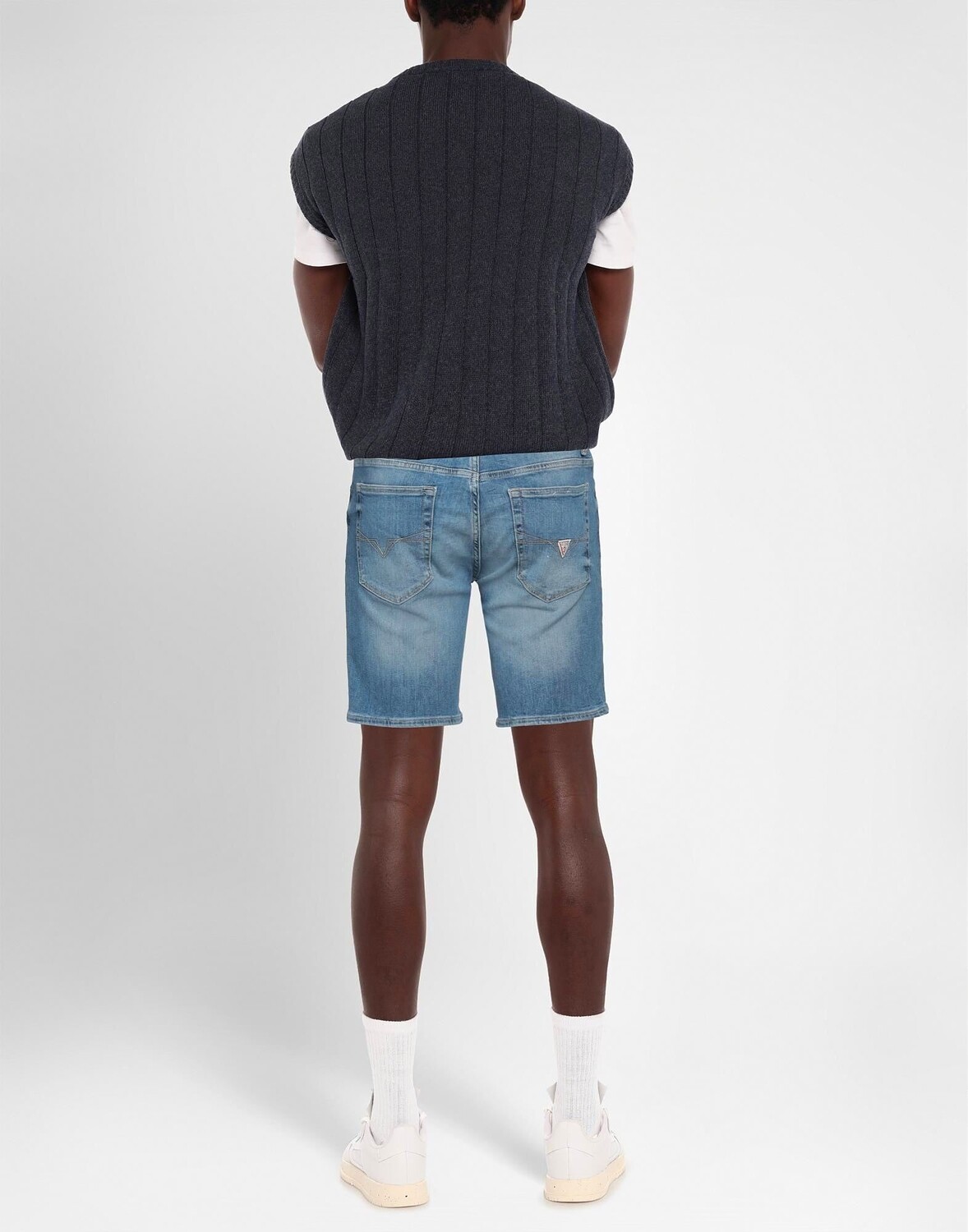 Джинсовая ткань, выцветший, логотип бренда, одноцветное изделие, средняя потертость, средняя посадка, стандартный крой, застежка-молния, 1 пуговица, шорты