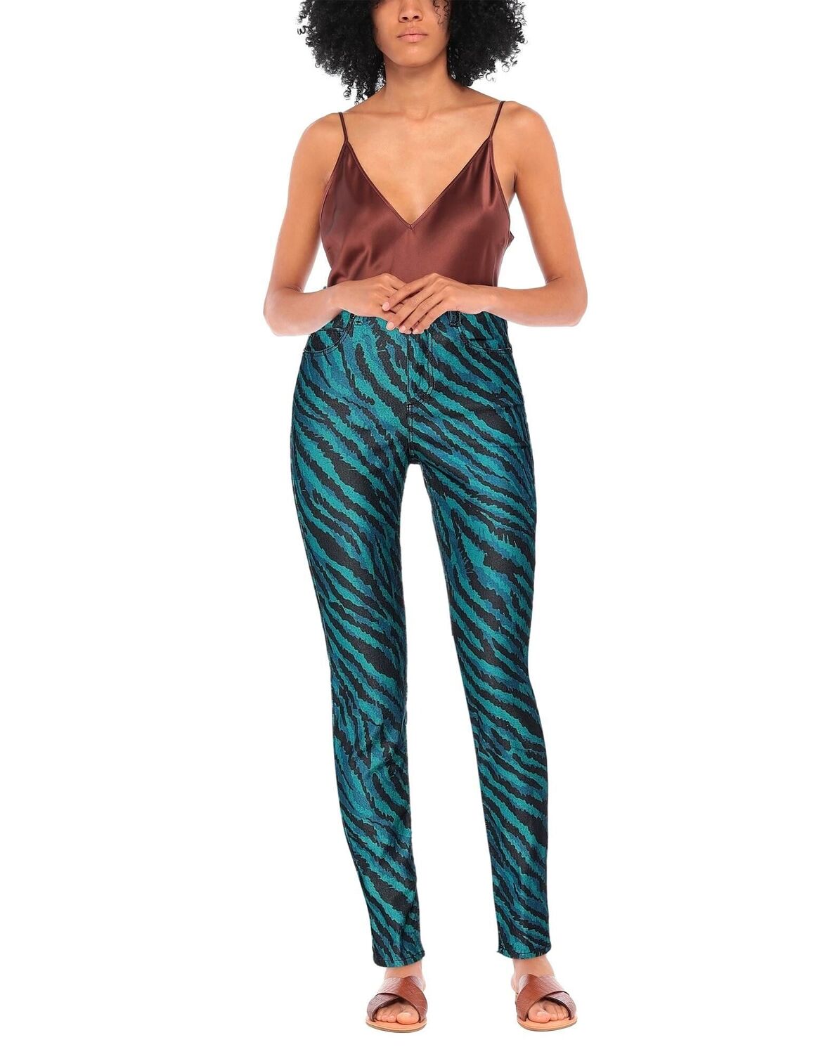 Деним, логотип бренда, тигровые полоски, цветная расцветка, средняя посадка, зауженные брючины, узкие брюки, пуговицы, застежка-молния, множество карманов, содержит нетекстильные части животного происхождения, стрейч