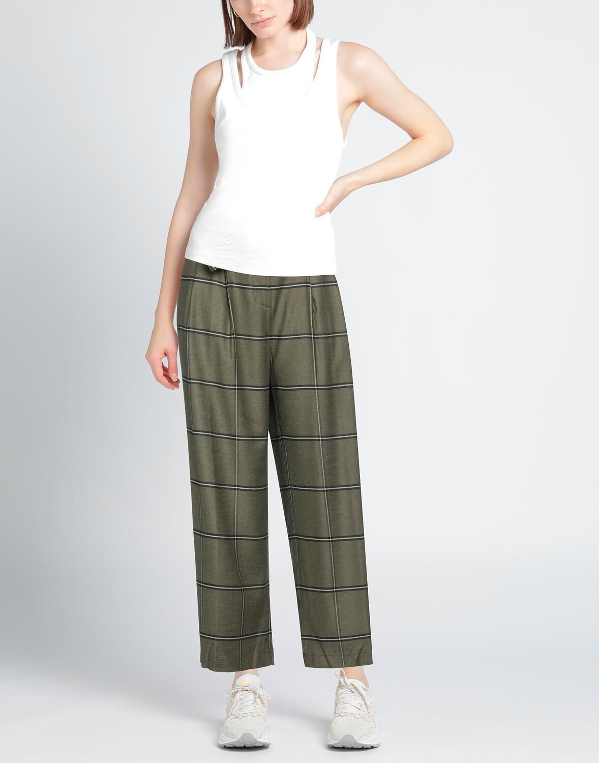 Фланель, пояс, клетка, завышенная талия, зауженные брючины, стандартный крой, застежка-молния, множество карманов, стрейч, брюки