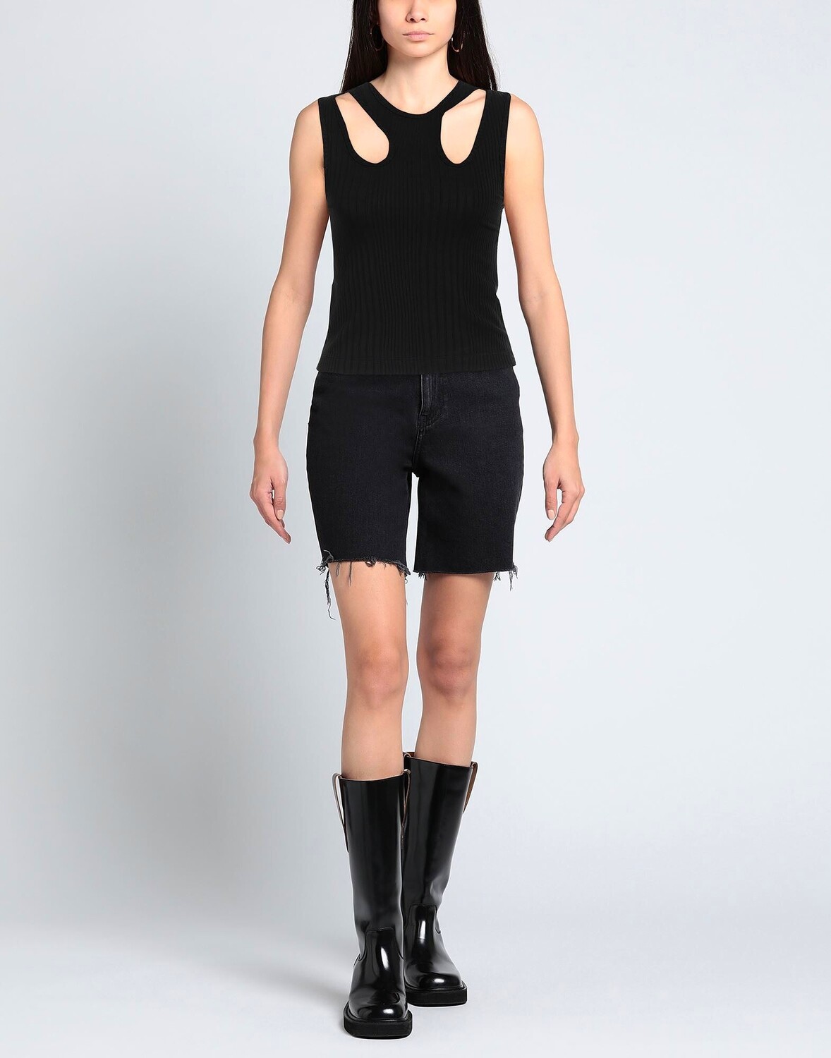Трикотаж, в рубчик, без аппликаций, одноцветное изделие, круглый вырез, без рукавов, без карманов, стрейч, топ