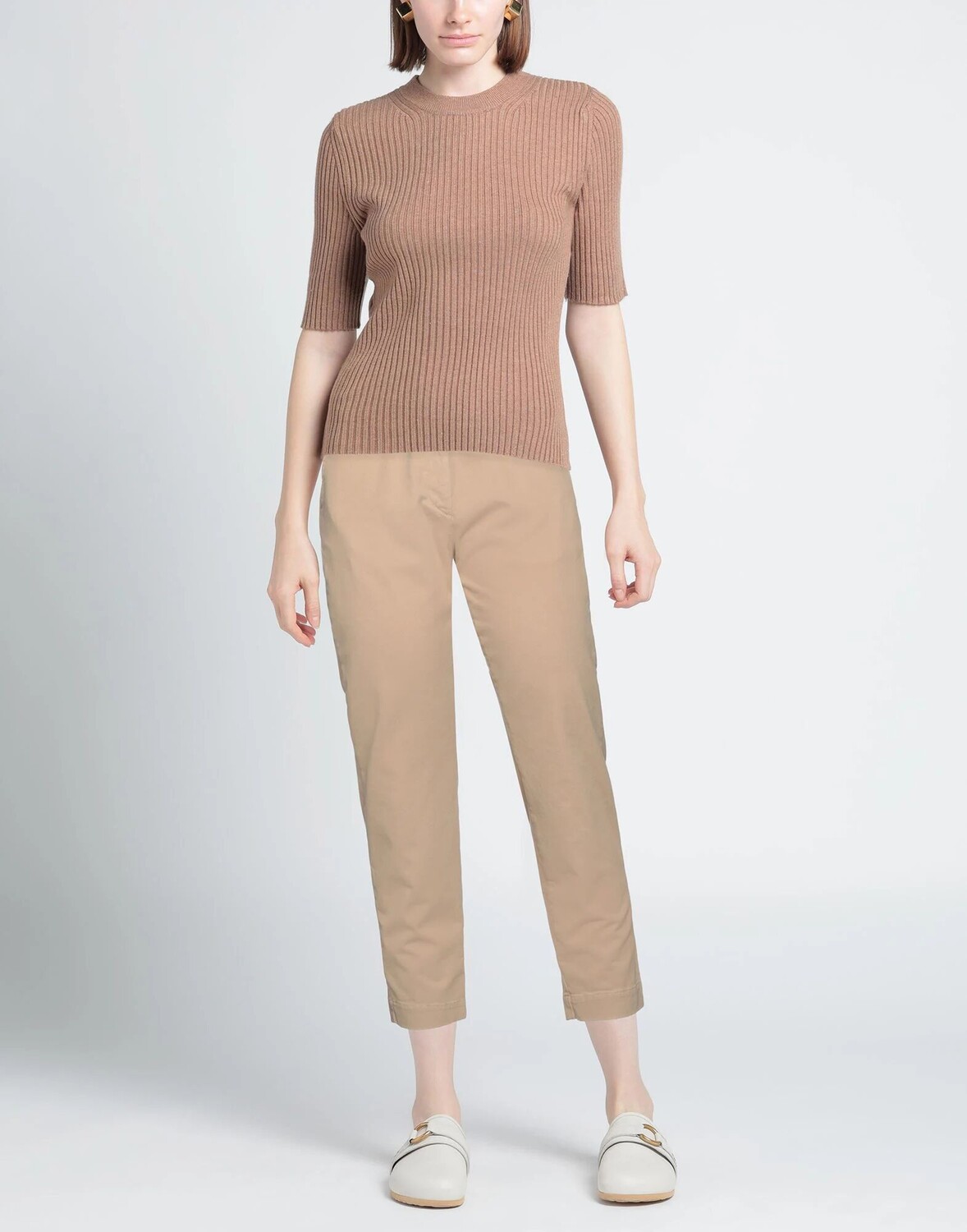 Габардин, логотип бренда, одноцветное изделие, завышенная талия, зауженные брючины, классический крой, застежка-молния, пуговицы, множество карманов, стрейч, брюки чинос