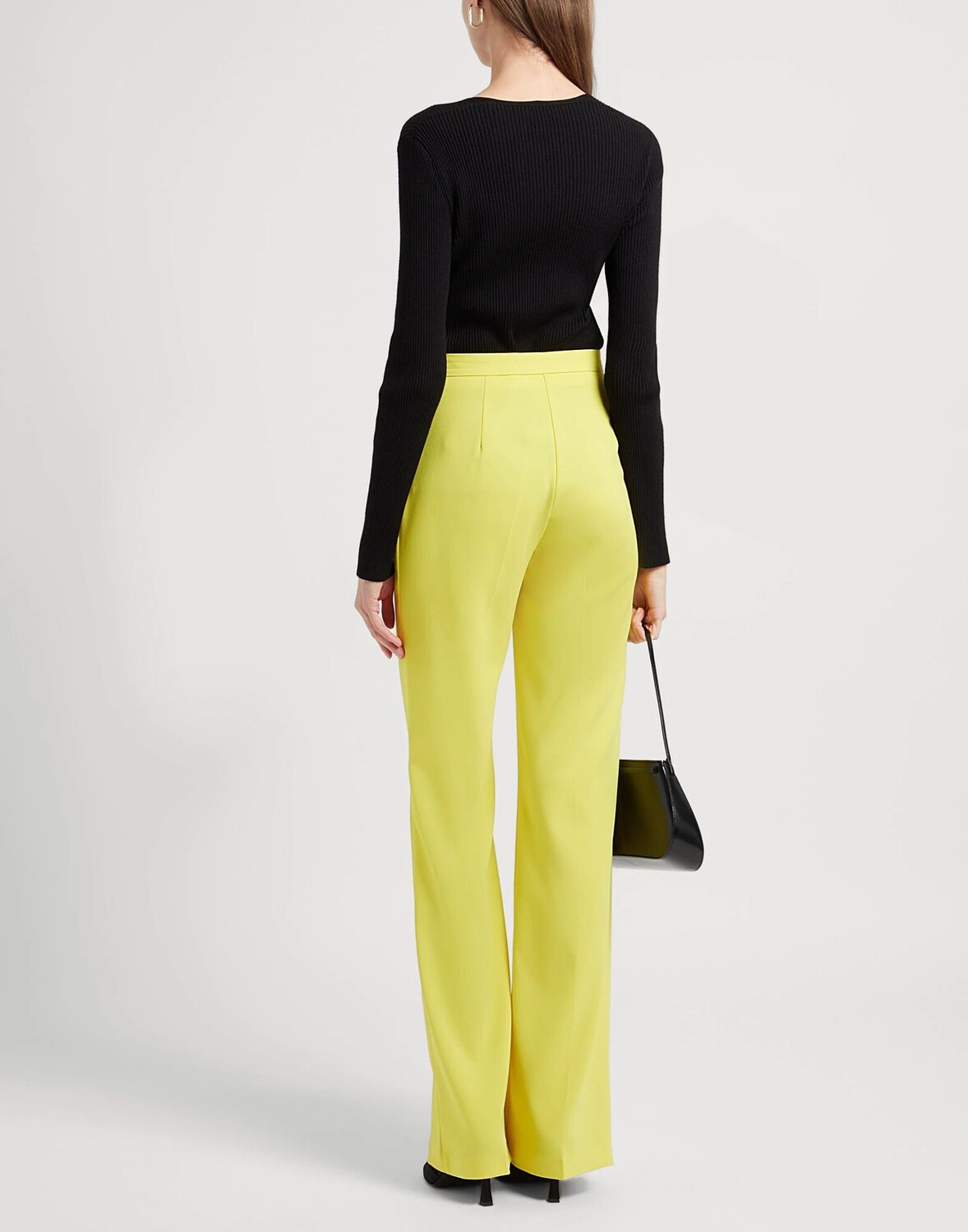 Широкие брюки, креп, без аппликаций, одноцветное изделие, завышенная талия, стандартный крой, застежка-молния, застежка на крючки, без карманов, стрейч, машинная стирка или химчистка, нельзя отбеливать, нельзя сушить в стиральной машине