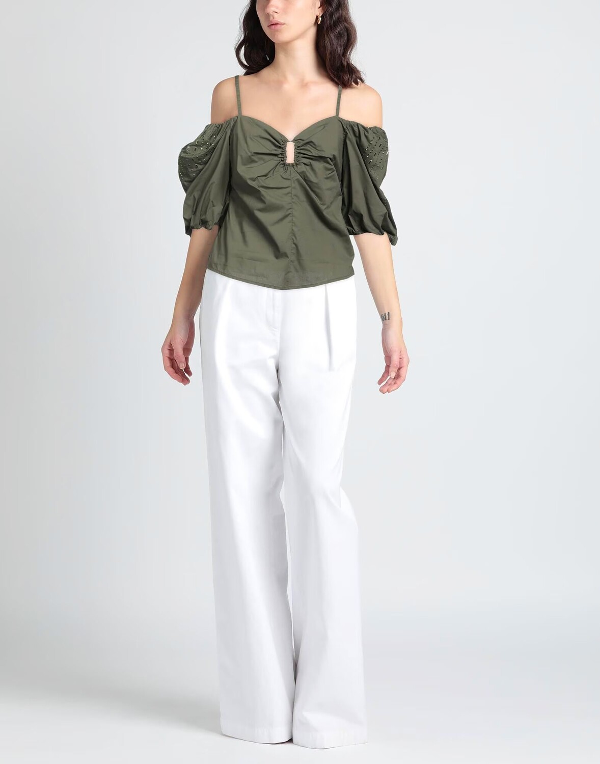 Поплин, стразы, однотонный с аппликациями, v-образный вырез, рукава 3/4, без карманов