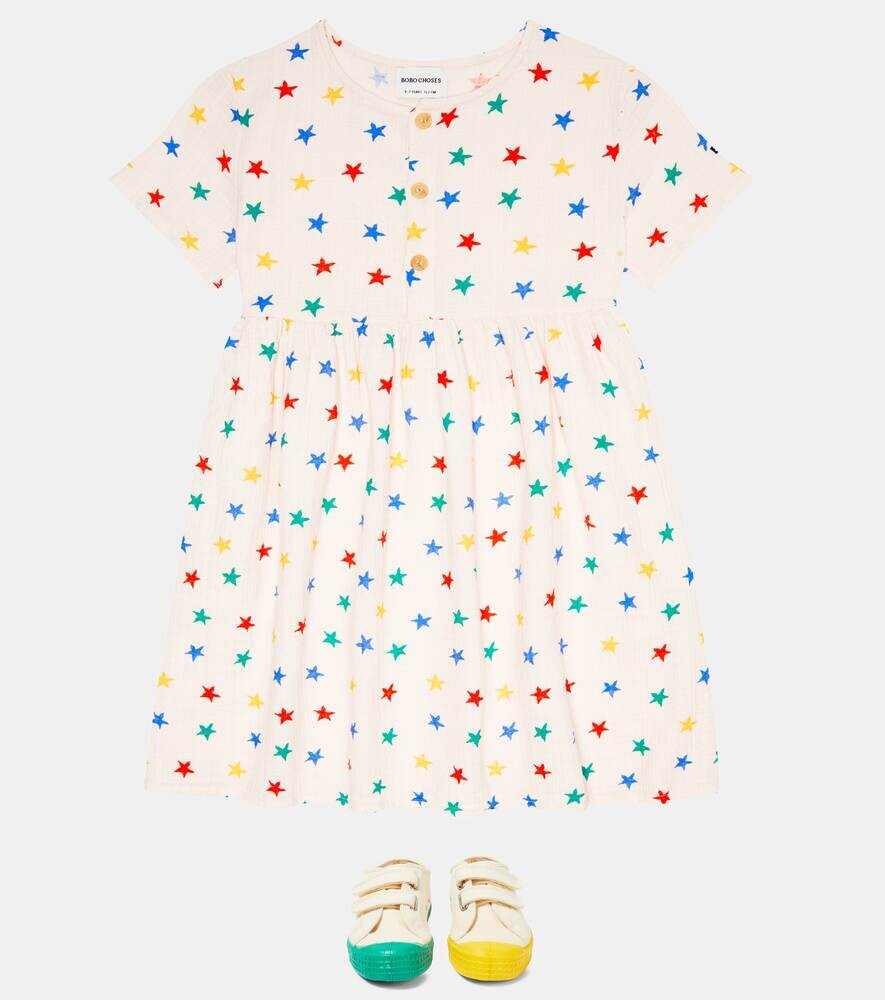 Хлопковое мини-платье со звездным принтом Bobo Choses, розовый