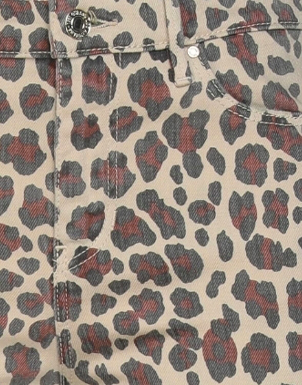Деним, логотип, леопардовый принт, цветная ткань, средняя посадка, застежка спереди, пуговицы, молния, множество карманов, стрейч