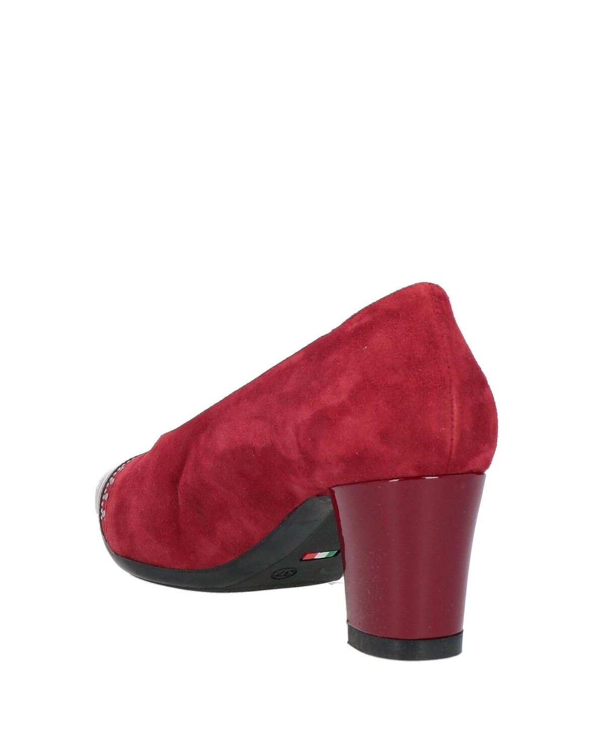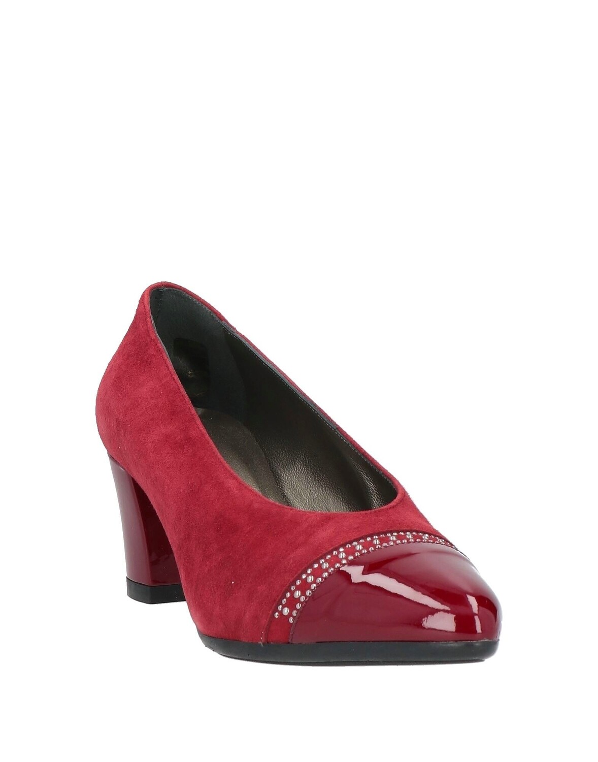 Кожа, эффект замши, эффект лака, заклепки, одноцветное изделие с аппликациями, подкладка из кожи, узкий носок, квадратный каблук, резиновая подошва с тиснением, содержит нетекстильные части животного происхождения, туфли-лодочки