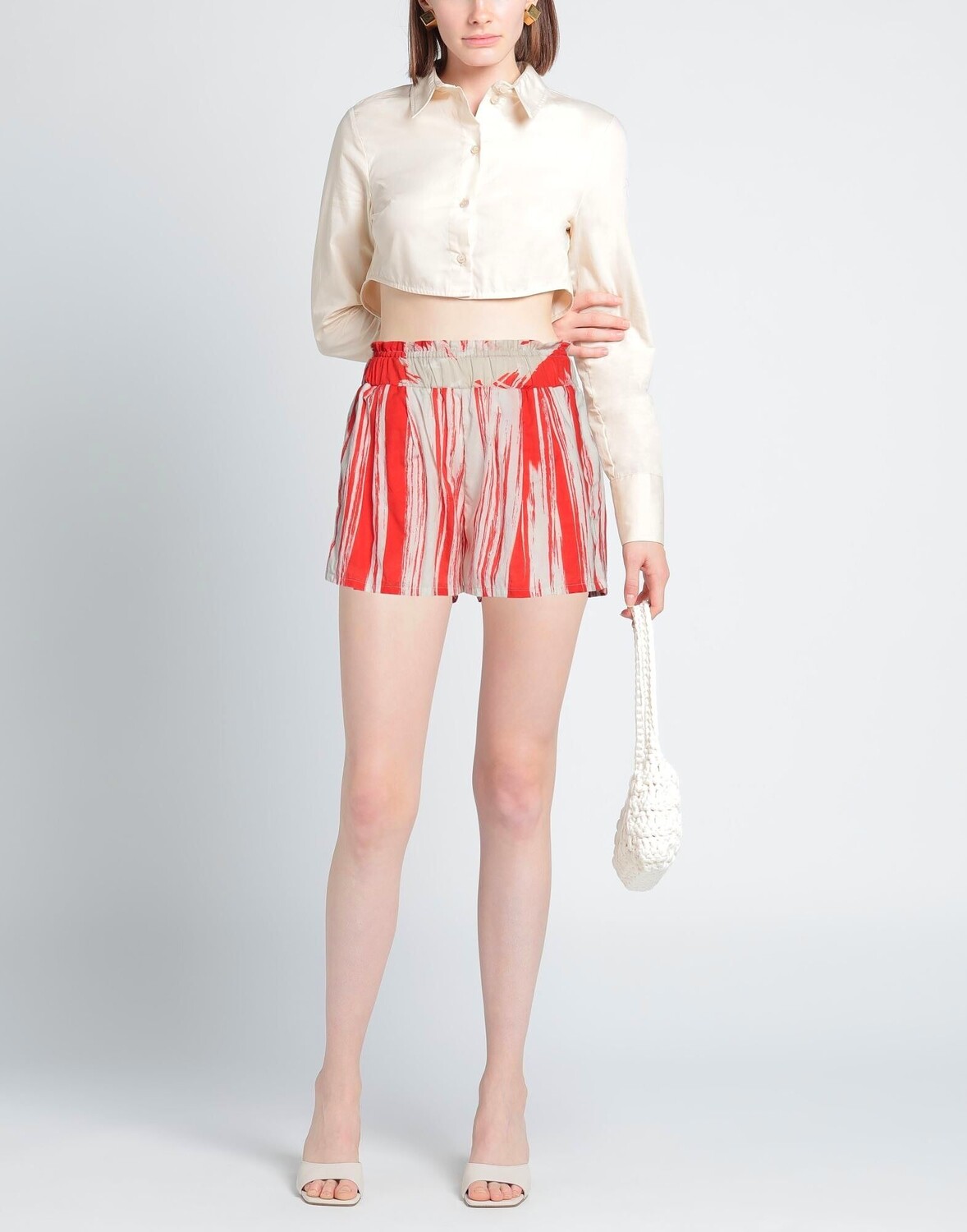 Тканый материал, без аппликаций, двухцветный, завышенная талия, талия на резинке, на подкладке, множество карманов, машинная стирка или химчистка, нельзя отбеливать, нельзя сушить в стиральной машине, шорты