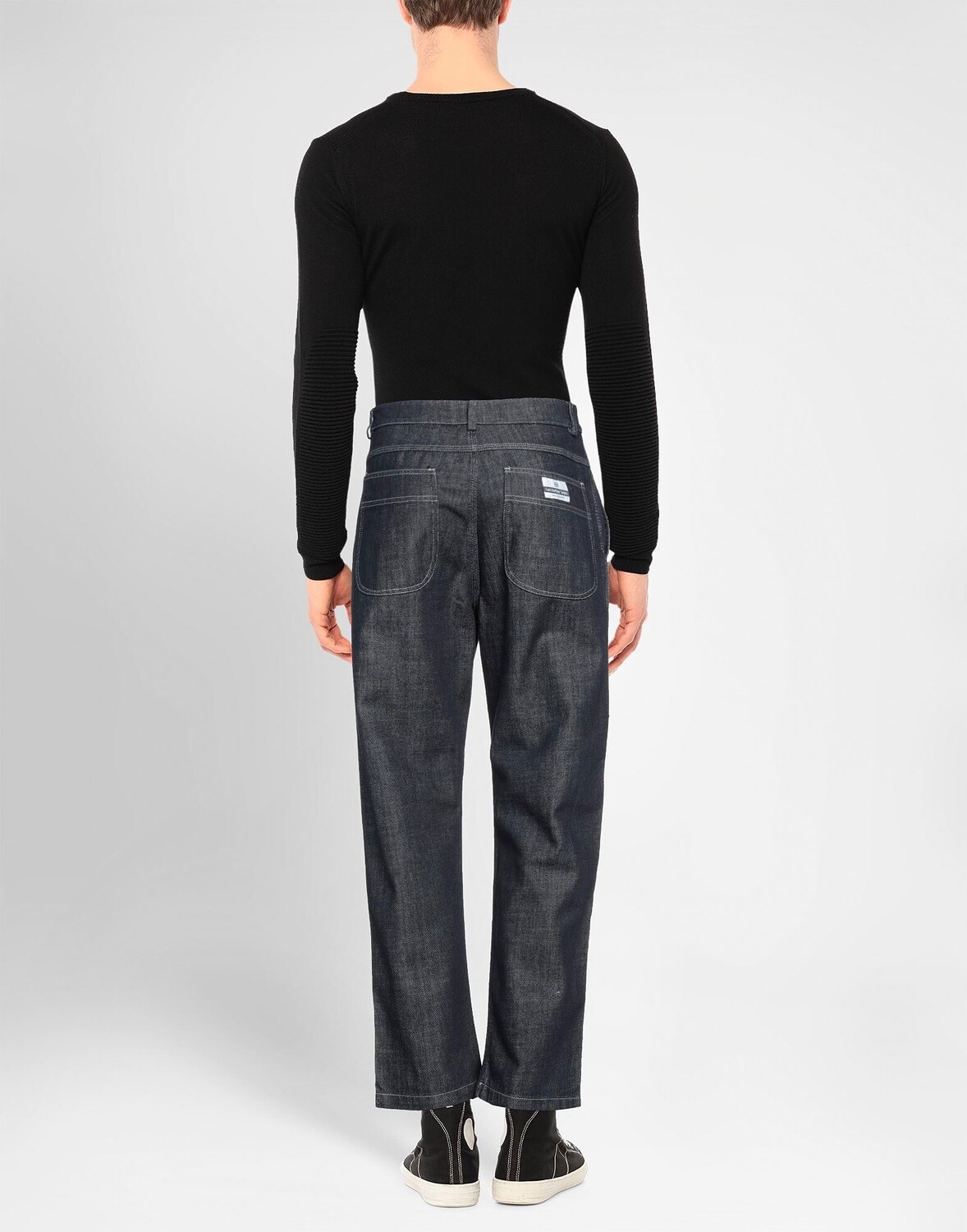 Джинсовая ткань, логотип бренда, одноцветное изделие, темный цвет, завышенная талия, зауженная брючина, стандартный крой, застежка-молния, 1 пуговица, множество карманов, зауженная модель