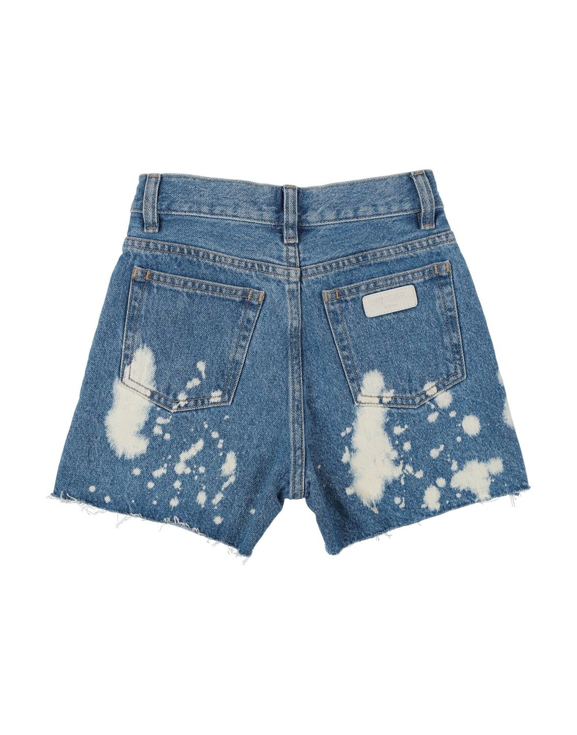 Джинсовая ткань, эффект пятен, логотип бренда, одноцветное изделие, средняя стирка, 1 пуговица, застежка-молния, необработанный край, множество карманов, стирка при 30°C, химическая чистка деликатными растворителями, не отбеливать, можно сушить в стиральной машине, гладить при 110° с макс