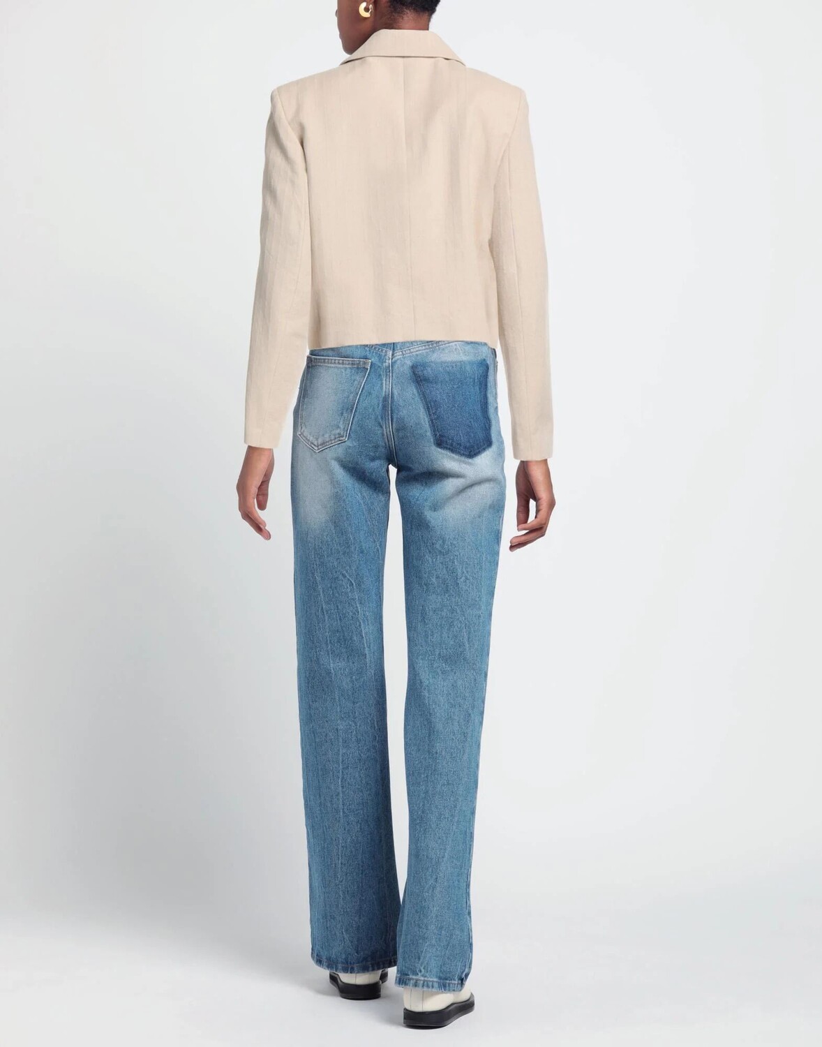 Полотняное переплетение, без аппликаций, одноцветное изделие, v-образный вырез, двубортный, длинные рукава, без подкладки, множество карманов, двубортный пиджак