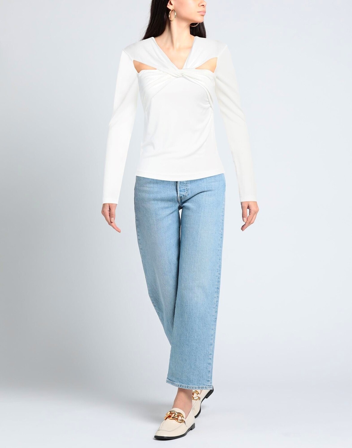Трикотаж, вырез, одноцветное изделие, v-образный вырез, длинные рукава, без карманов, футболка