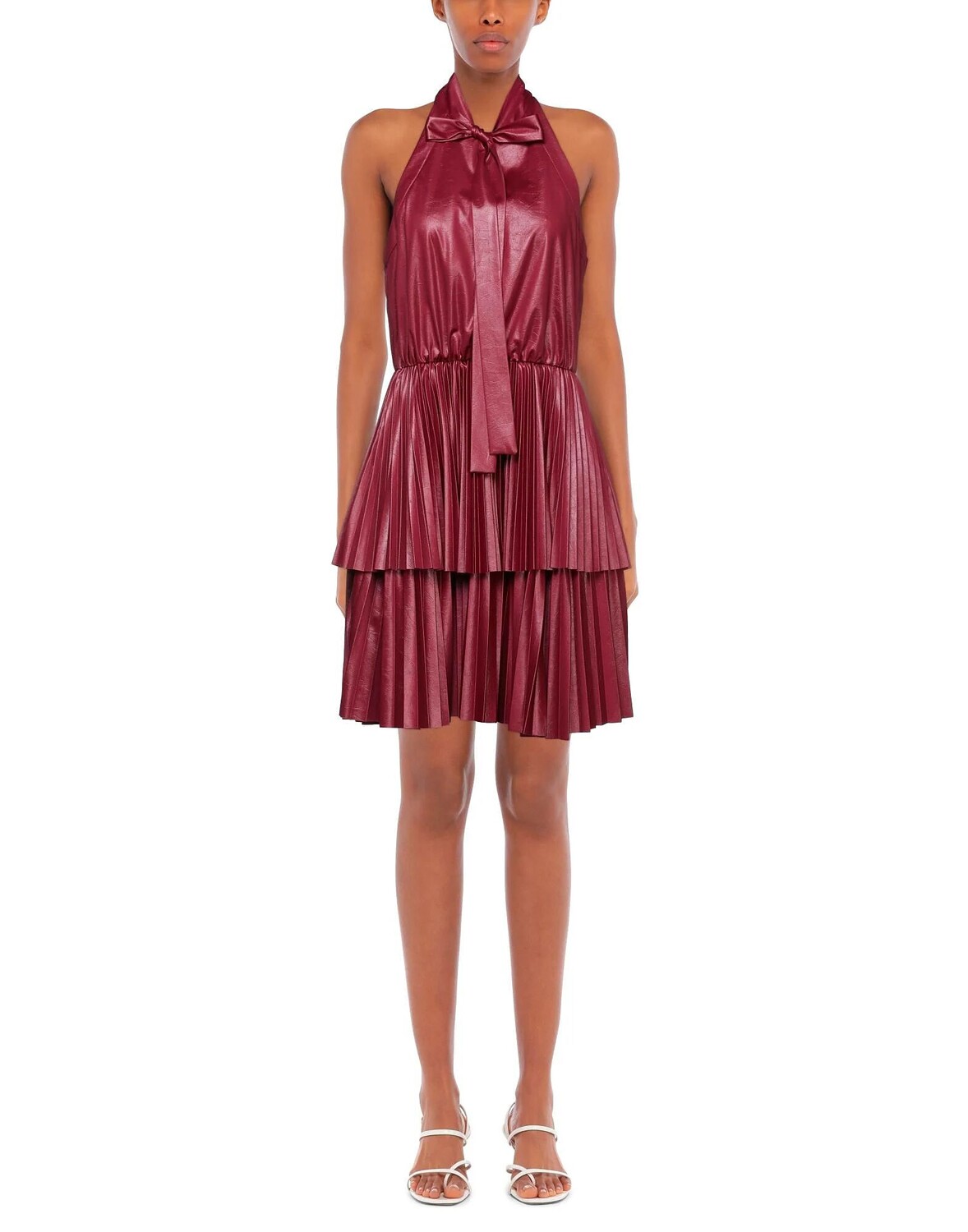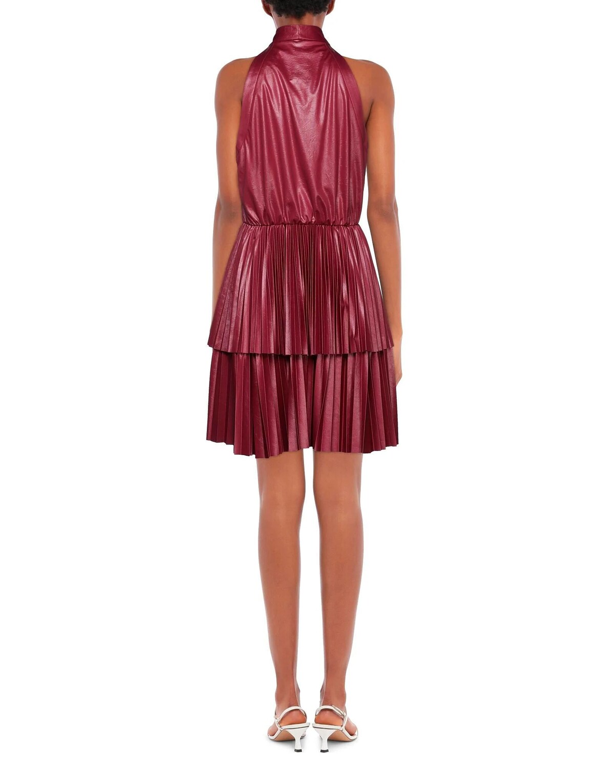 Платье расклешенное, ткань с покрытием, однотонное с аппликациями, многоярусное, вырез-бабочка, без рукавов, на подкладке, без карманов.