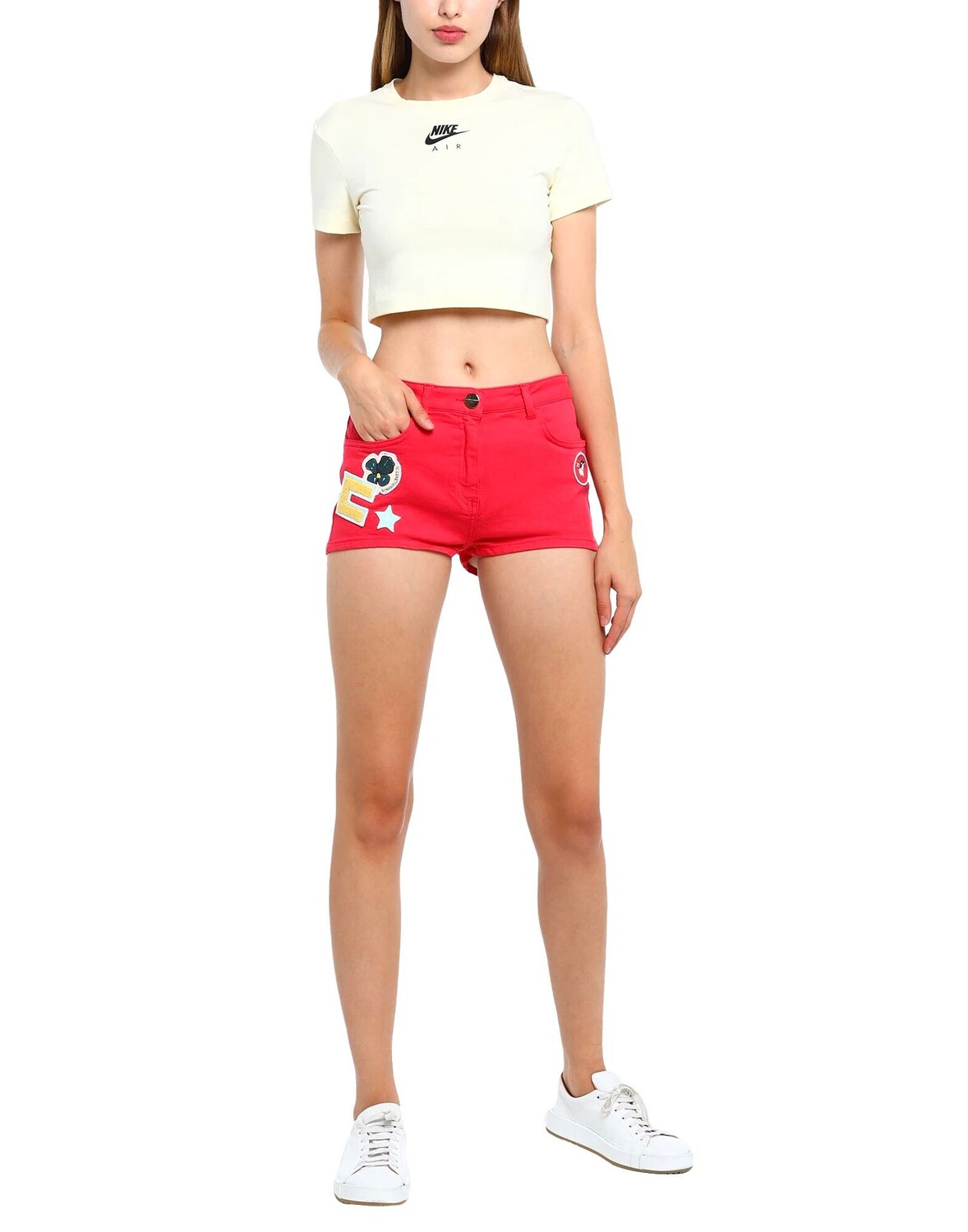 Джинсовая ткань, логотип бренда, украшение, одноцветное изделие, цветная стирка, множество карманов, стрейч, шорты