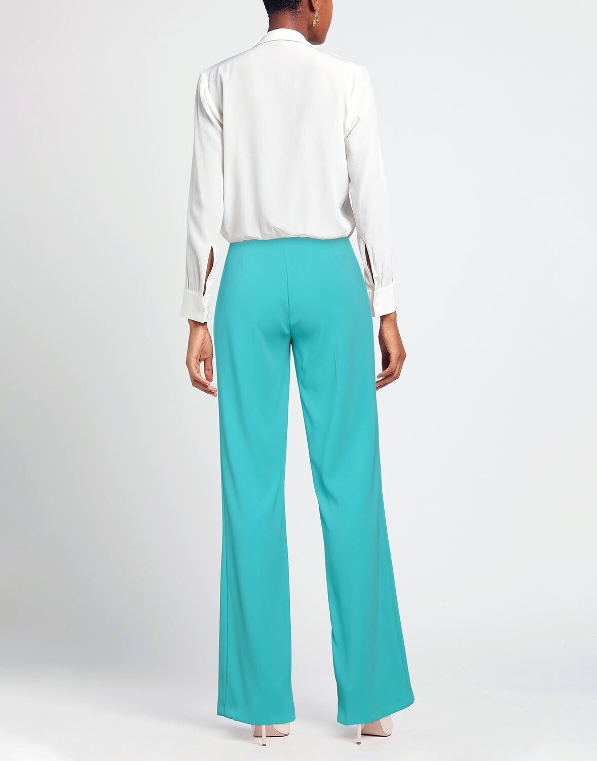 Широкие брюки, креп, без аппликаций, одноцветное изделие, завышенная талия, стандартный крой, застежка-молния, застежка на крючки, без карманов, стрейч, машинная стирка или химчистка, нельзя отбеливать, нельзя сушить в стиральной машине