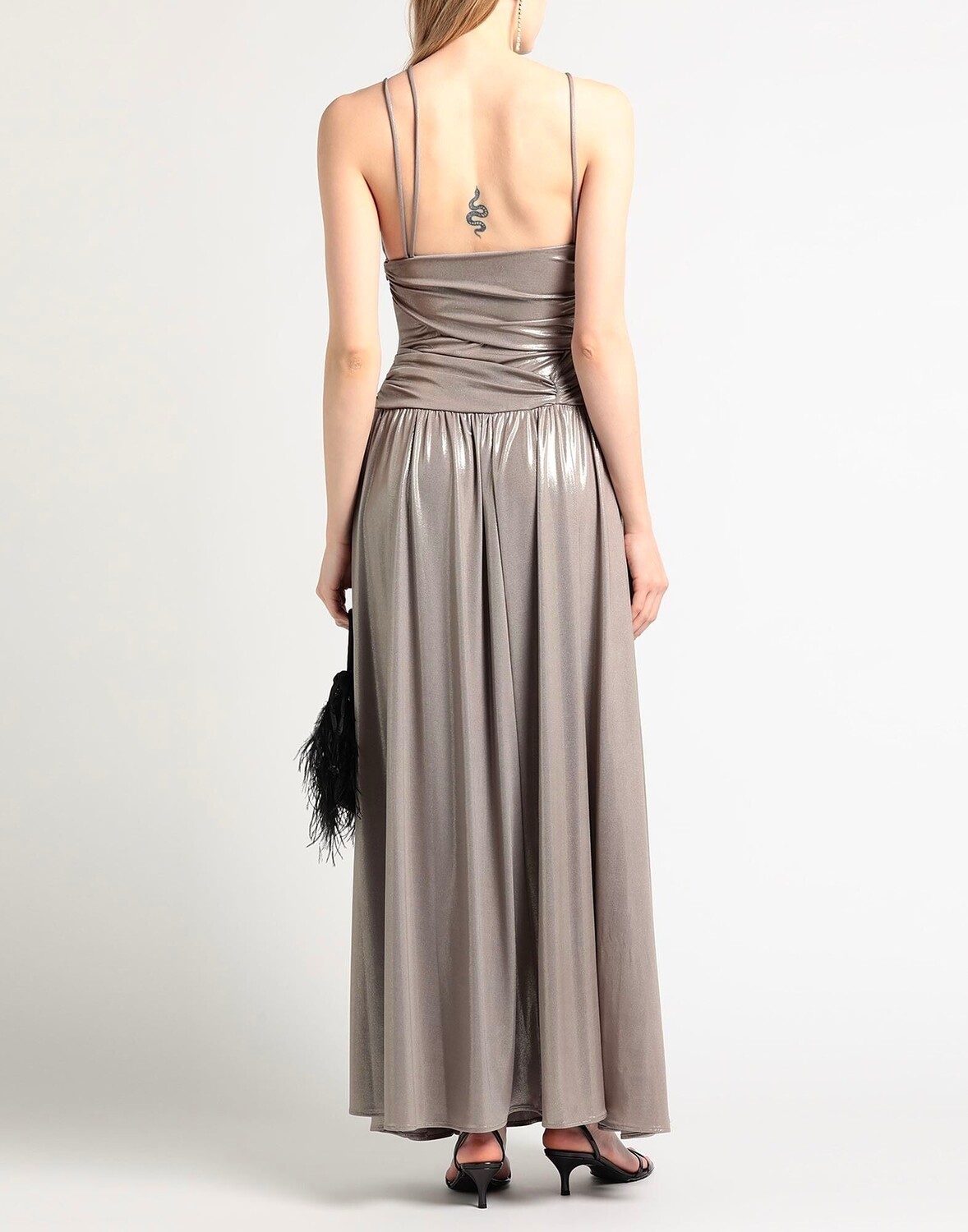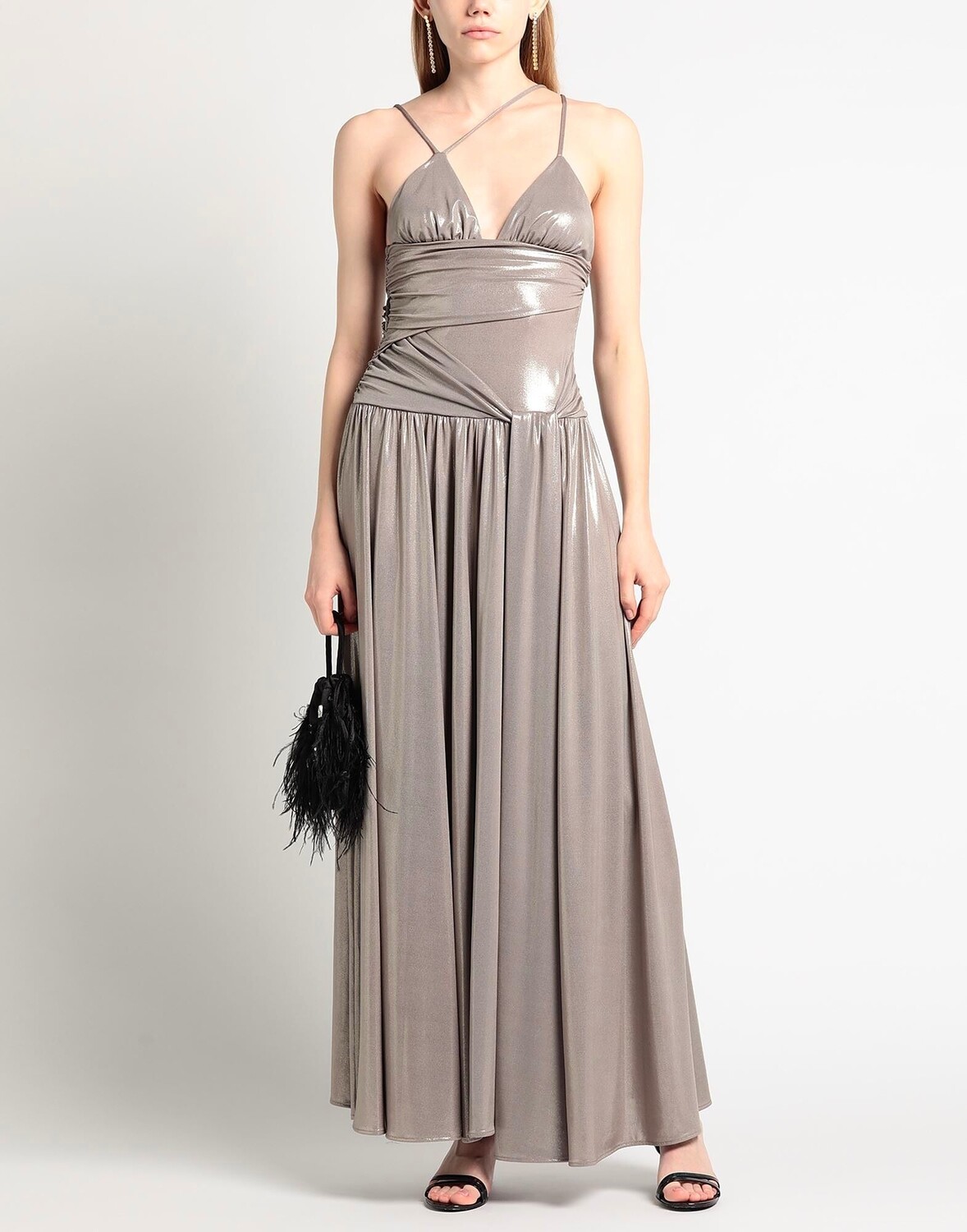 Джерси, ламе, без аппликаций, одноцветное изделие, глубокий вырез, без рукавов, без подкладки, застежка-молния, стрейч, расклешенное платье