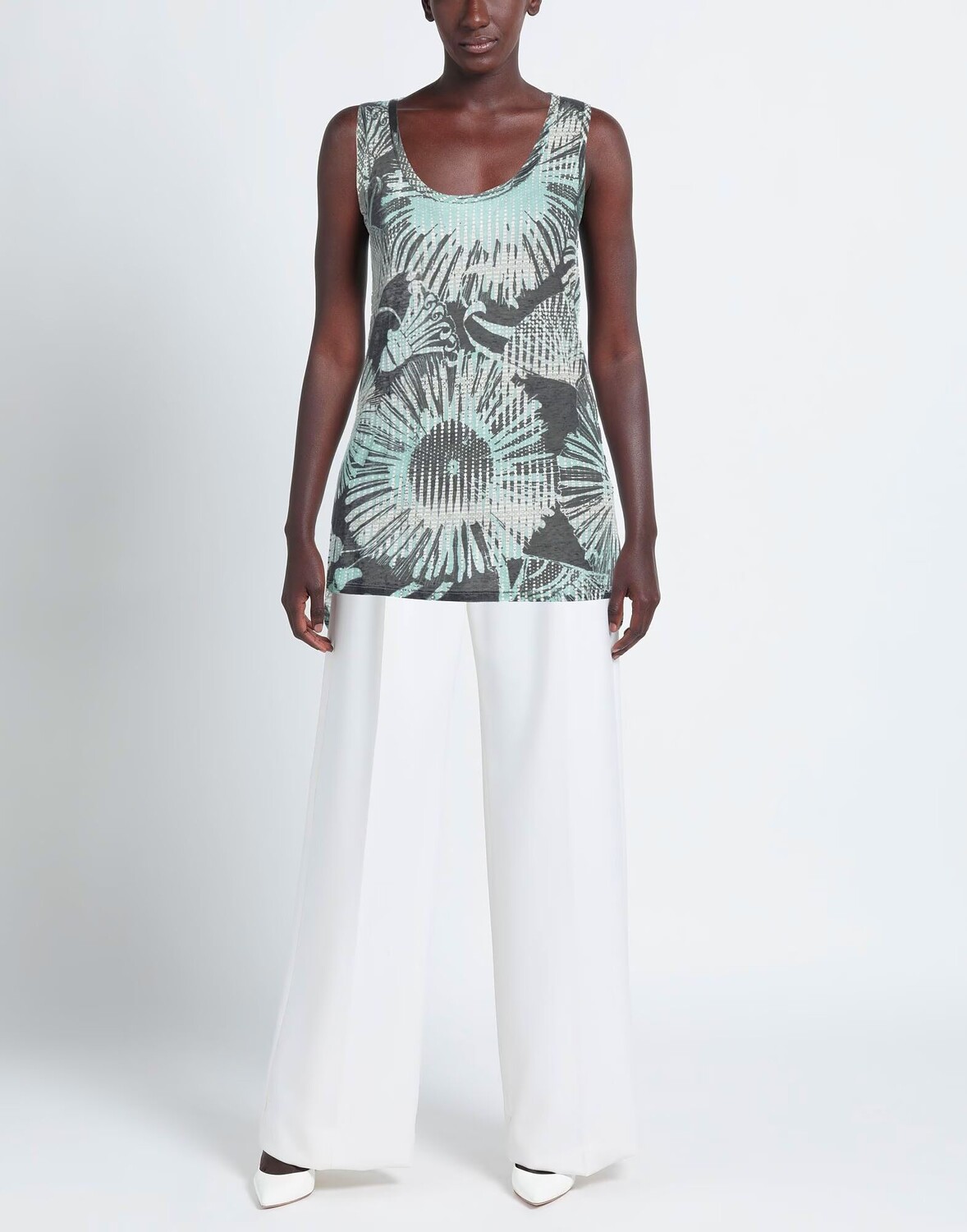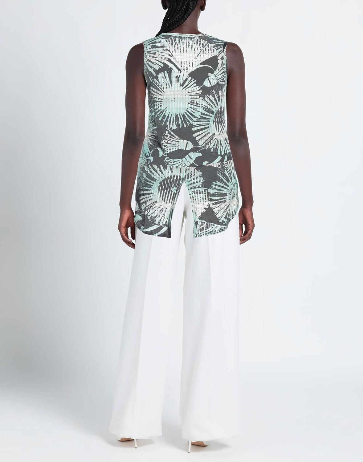 Трикотаж, легкий трикотаж, без аппликаций, разноцветный, круглый вырез, без рукавов, без карманов, по низу боковой разрез, верх