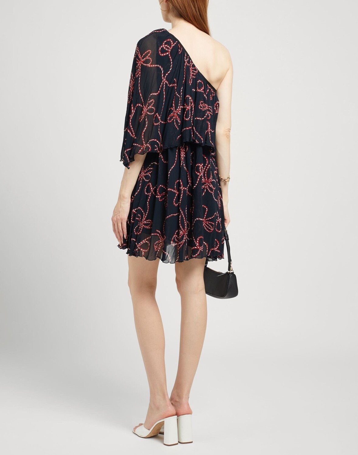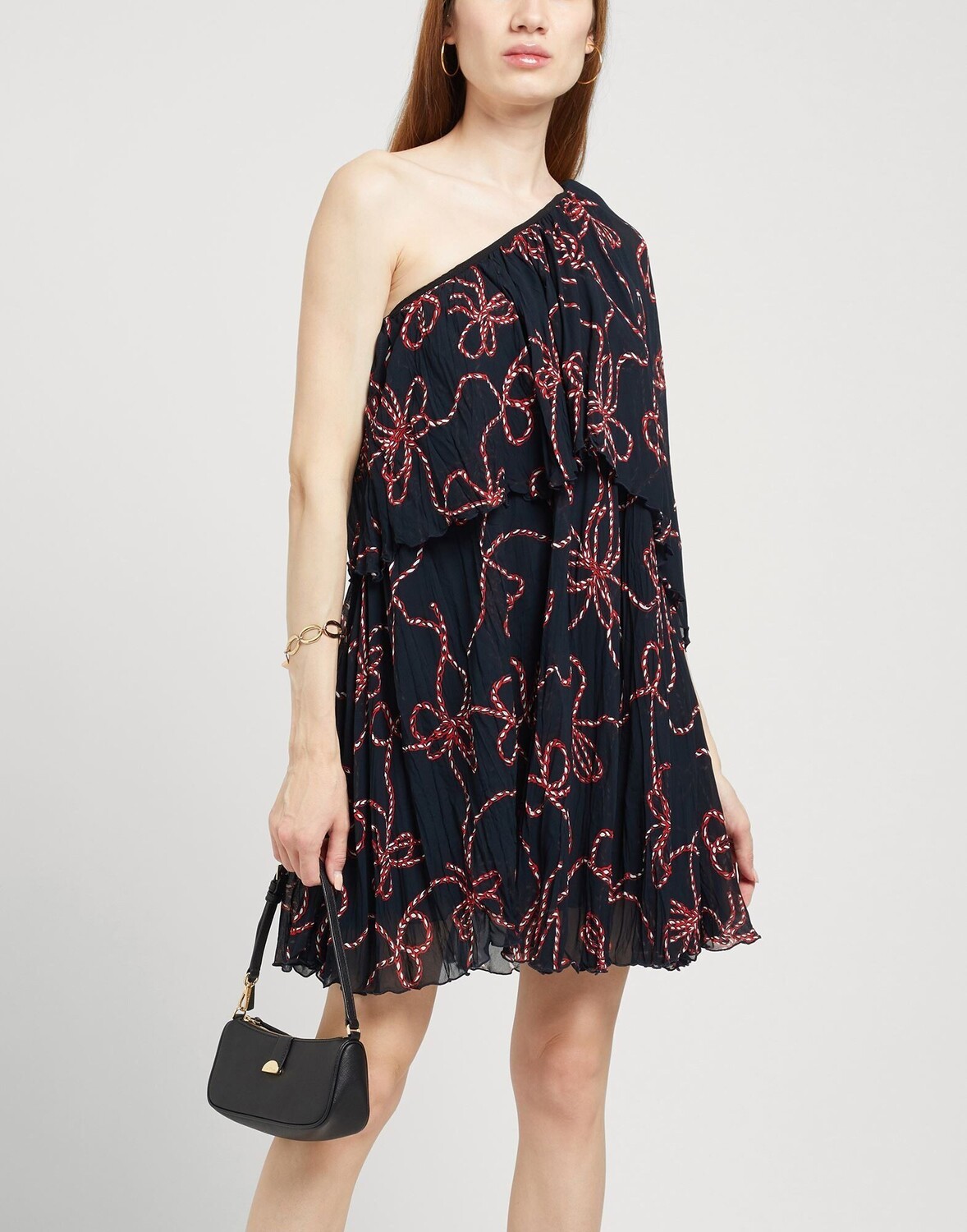 Креп, жатый, многоярусный, многоцветный, на одно плечо, на подкладке, застежка-молния, без карманов, нельзя стирать, нельзя сушить в стиральной машине, не отбеливать, платье на одно плечо