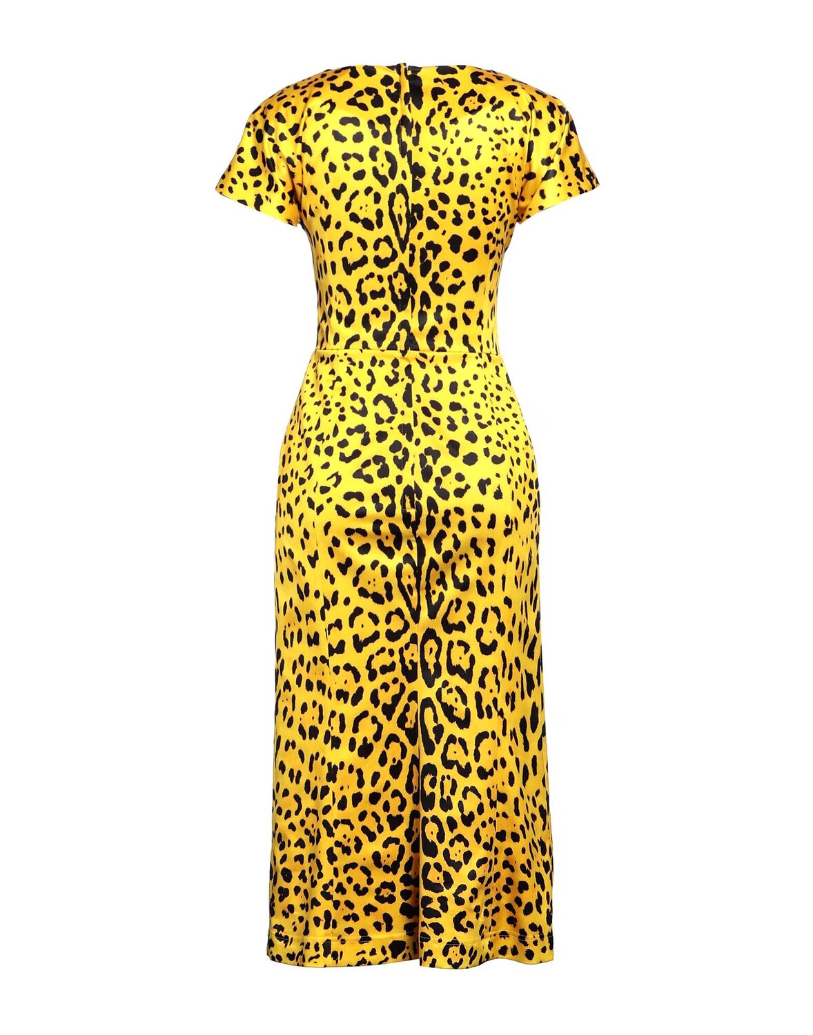 Атлас, без аппликаций, леопардовый принт, круглый вырез, короткие рукава, внутренняя обтачка, застежка-молния, застежка на крючки, без карманов, стрейч, химчистка, не отбеливать, не сушить в стиральной машине, облегающее платье