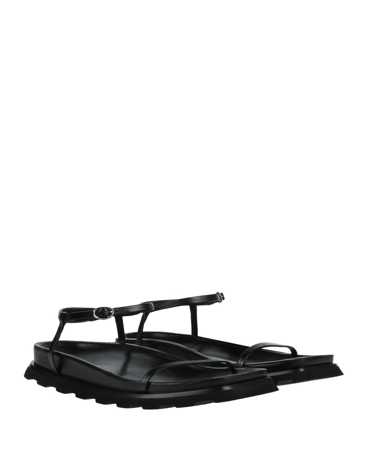 Кожа, кожа наппа, без аппликаций, одноцветное изделие, кожаная подкладка, ремешок с пряжкой на щиколотке, квадратный носок, без каблука, резиновая подошва с тиснением, содержит нетекстильные части животного происхождения, технические сандалии, маленький размер