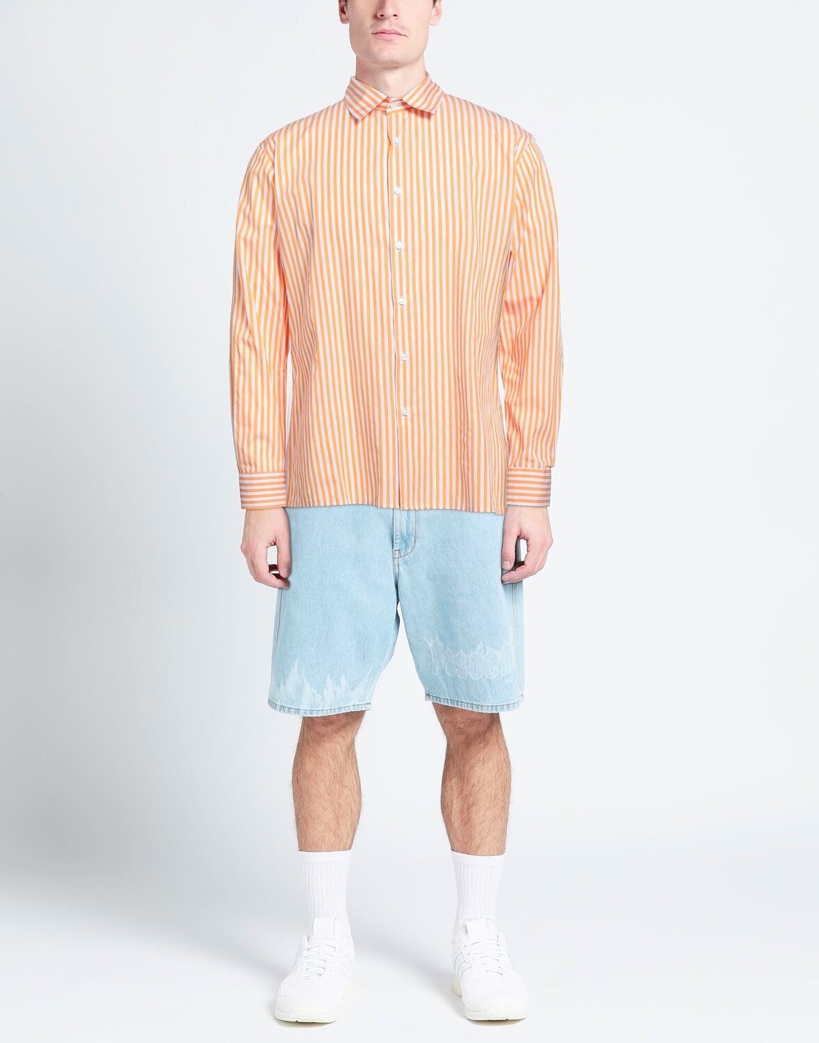 Полотняное плетение, принт, логотип бренда, полоски, классический вырез горловины, длинные рукава, пуговицы, без карманов