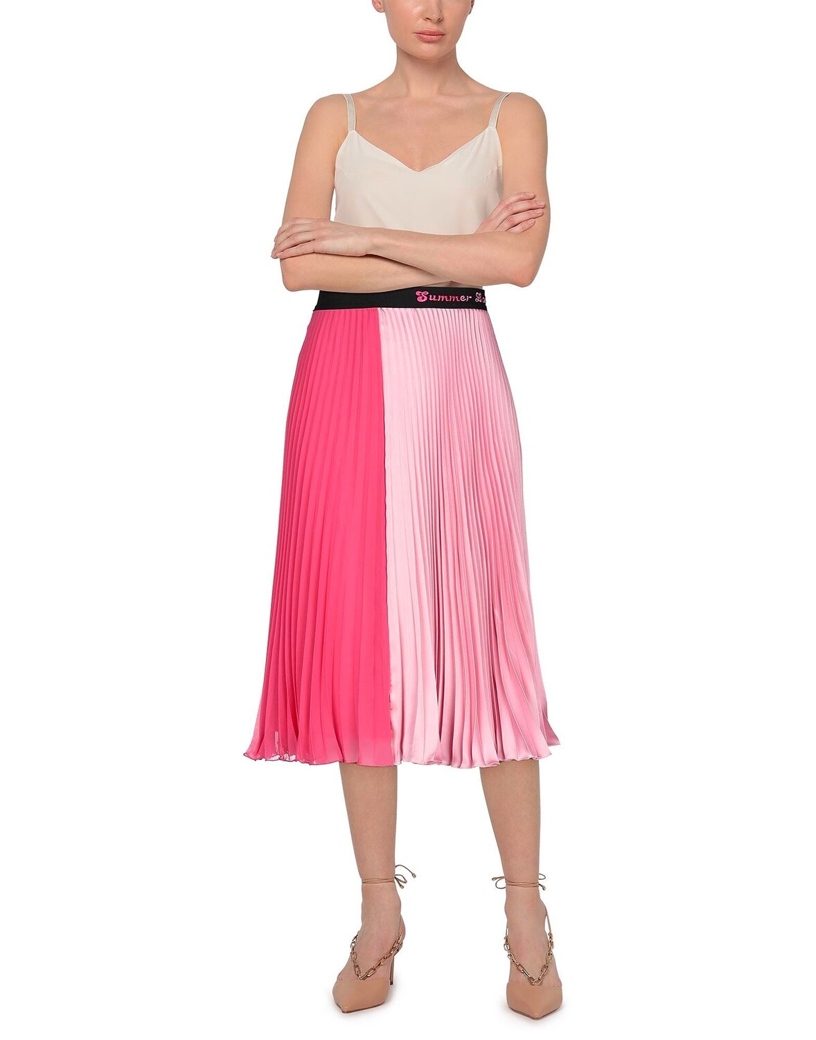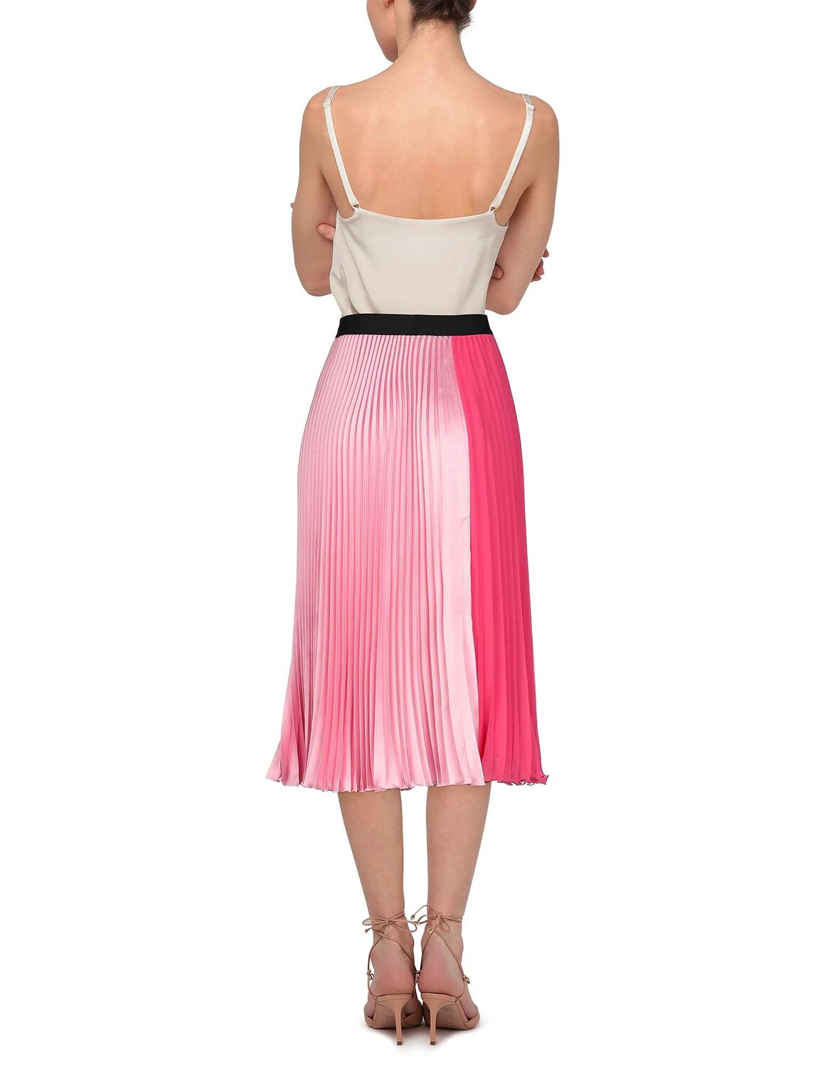 Атлас, креп, плиссировка, вышивка, двухцветный, талия на резинке, без карманов, без подкладки