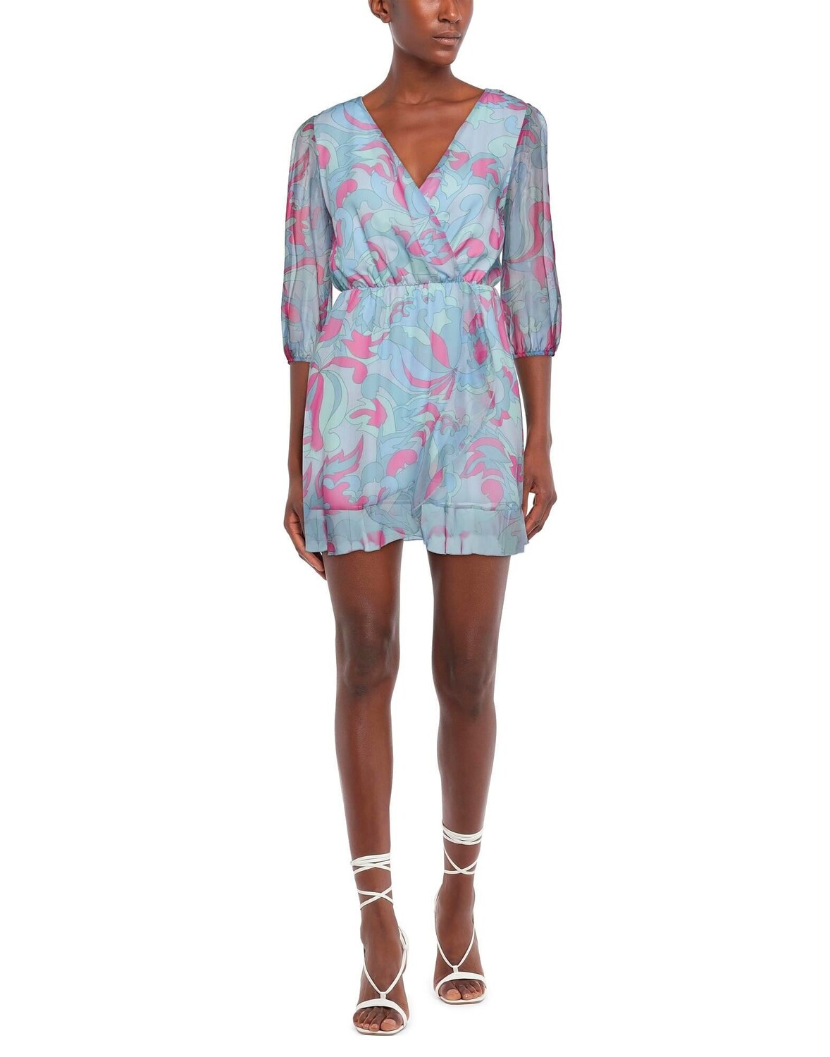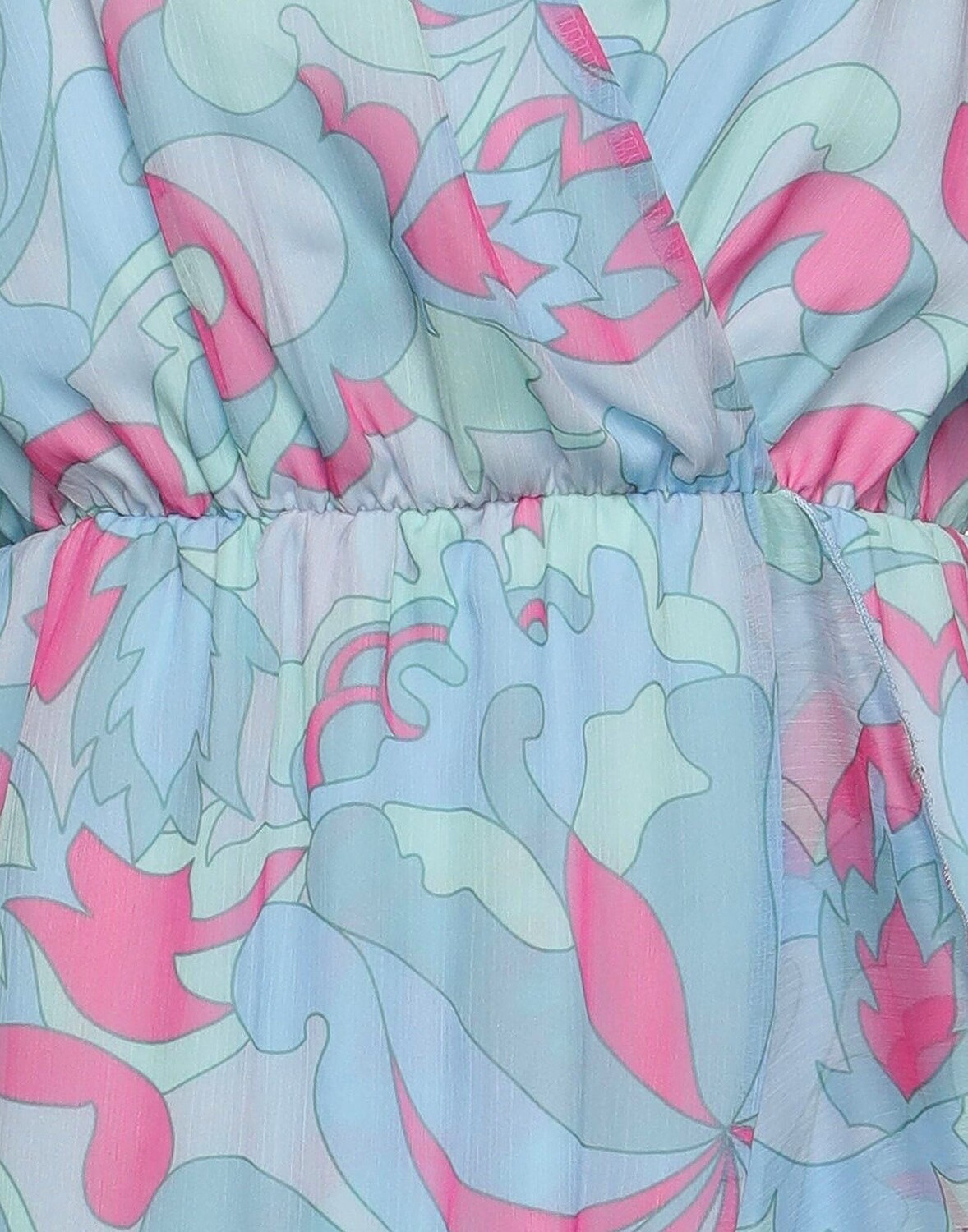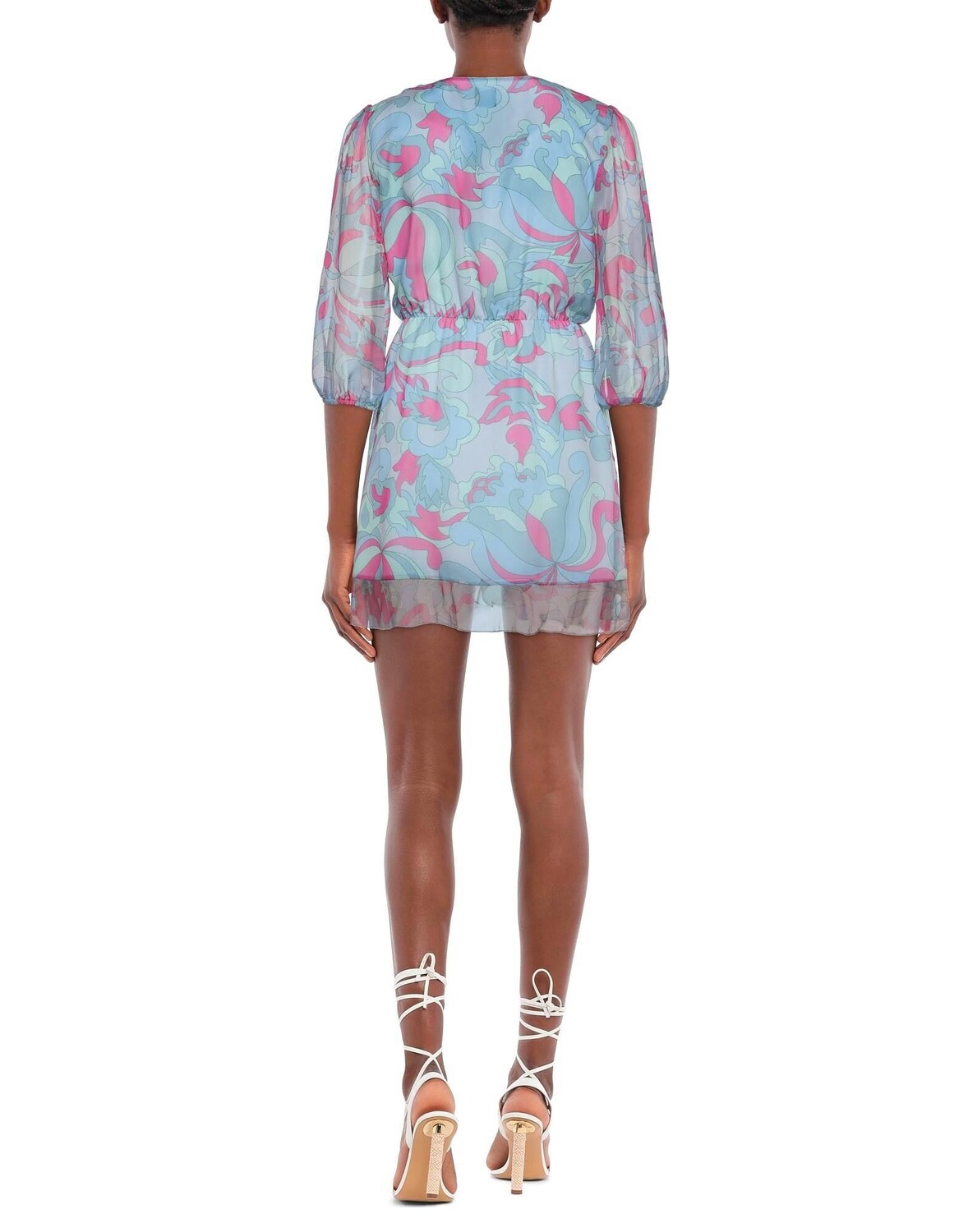 Креп, без аппликаций, разноцветный, v-образный вырез, рукава 3/4, на подкладке, без карманов, расклешенное платье