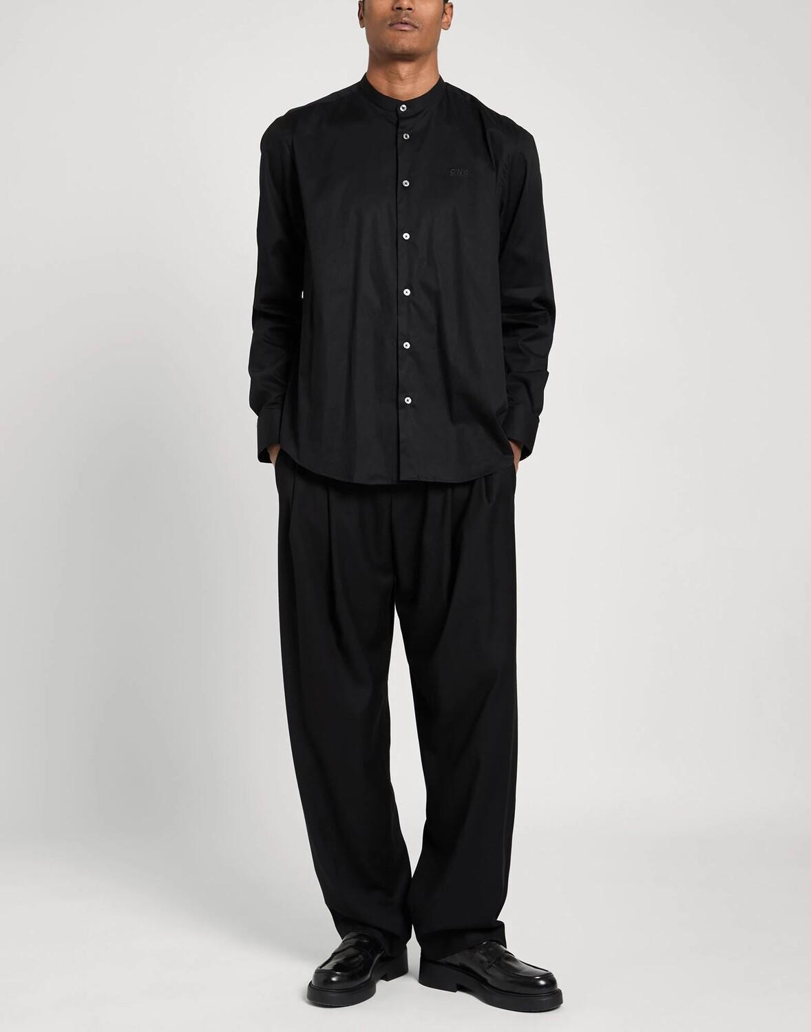 Полотняное переплетение, логотип бренда, вышивка, одноцветное изделие, воротник-стойка, длинные рукава, пуговицы, без карманов, стрейч