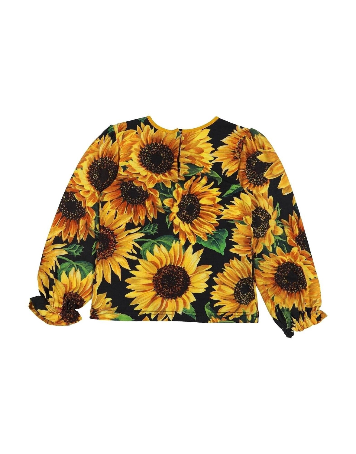 Джерси, без аппликаций, цветочный дизайн, круглый воротник, длинные рукава, застежка сзади, кнопки, без карманов, стирка при 30°C, химическая чистка, гладить при температуре не выше 110°C, не отбеливать, нельзя сушить в стиральной машине, стрейч