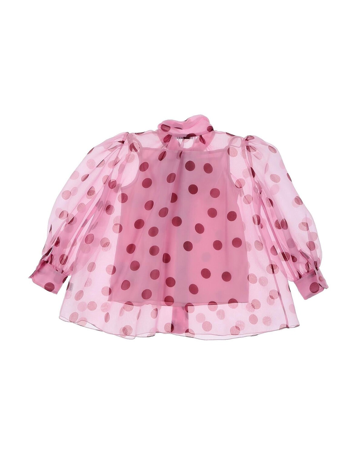 Органза, без аппликаций, в горошек, воротник-бабочка, длинные рукава, манжеты на пуговицах, застежка на пуговицы, без карманов, скользящая по линии.
