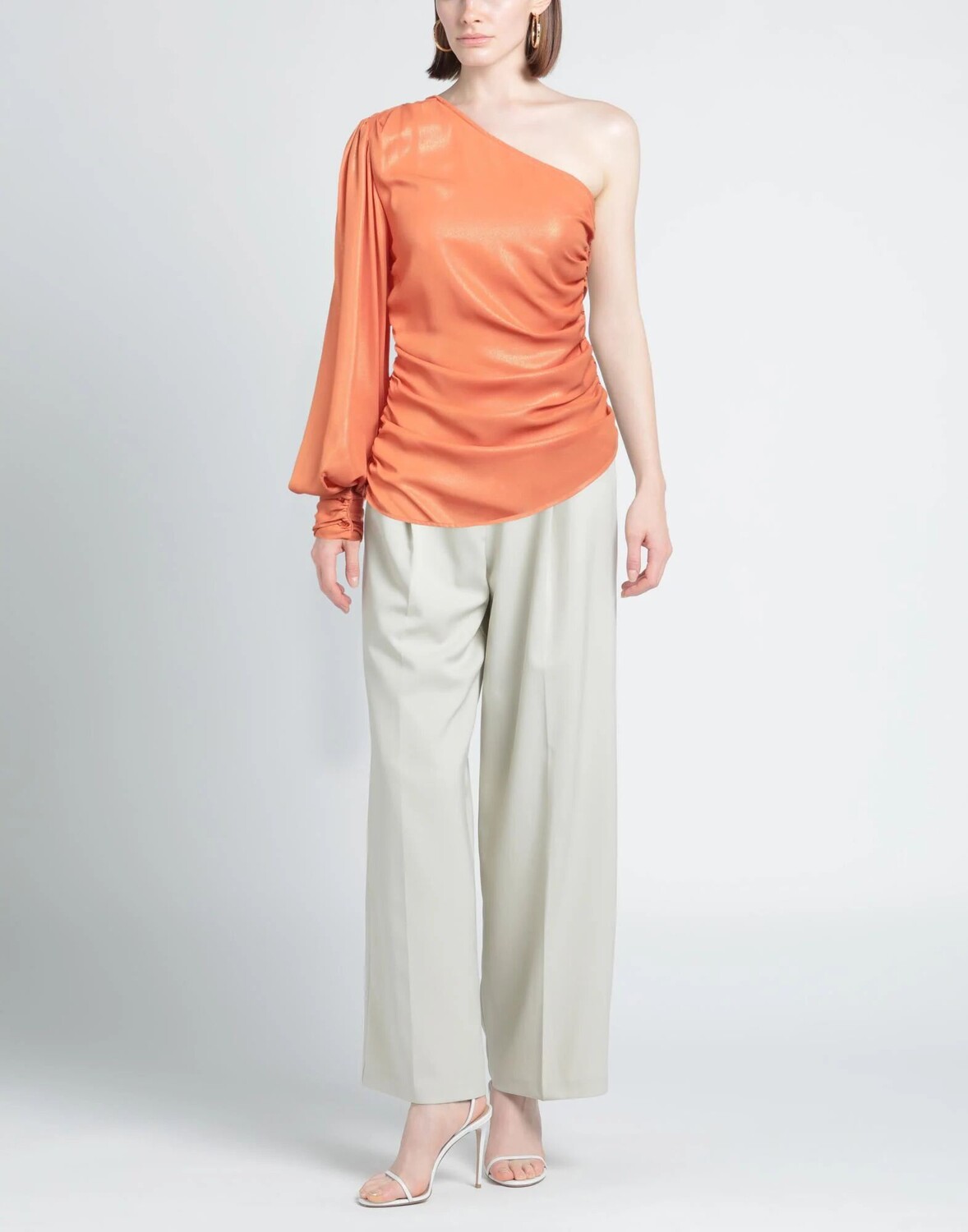 Топ на одно плечо, креп, ламе, без аппликаций, одноцветное изделие, овальный вырез, на одно плечо, без карманов