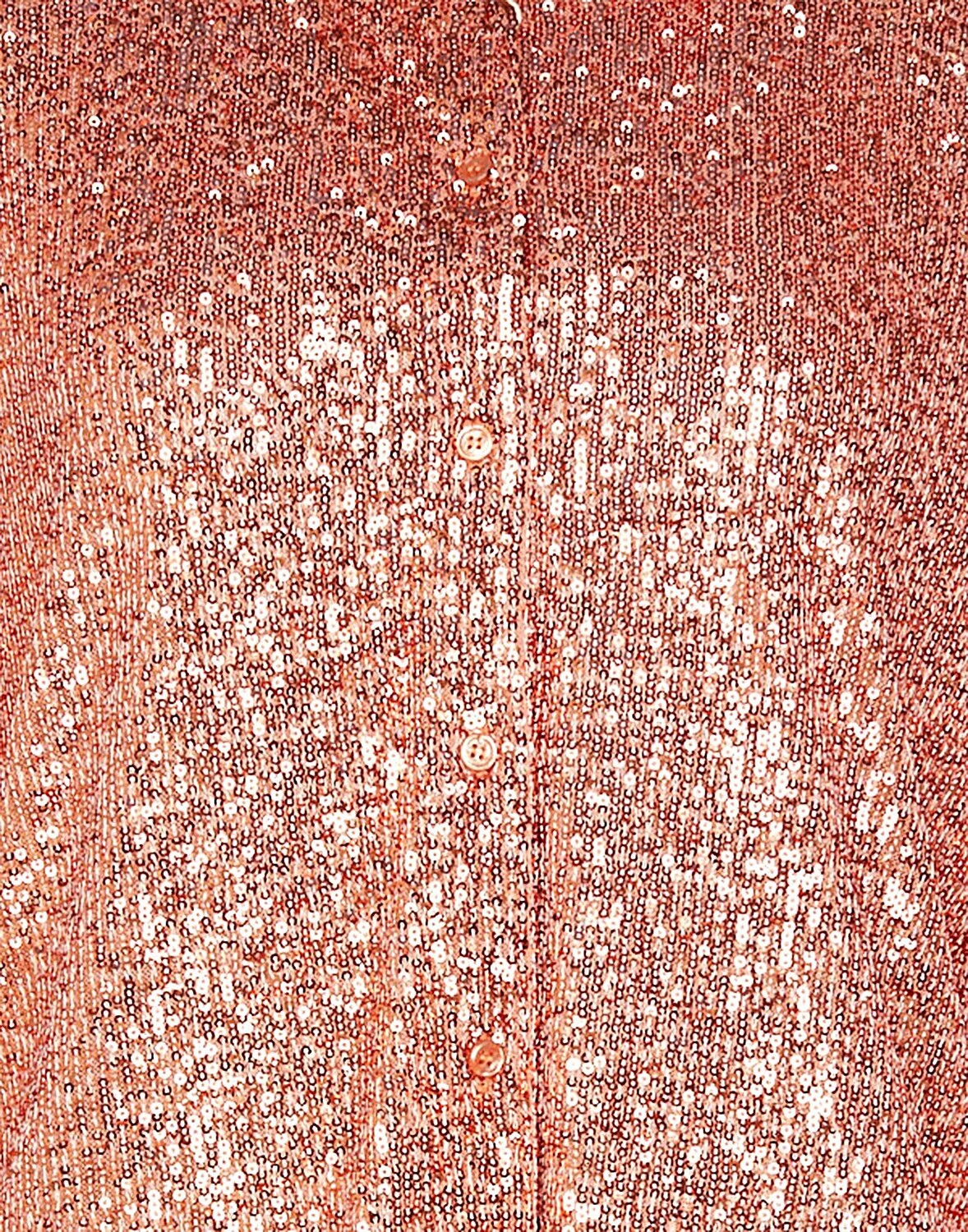 Ткань сетка, пайетки, однотонное изделие с аппликациями, классический вырез горловины, длинные рукава, без подкладки, застежка на пуговицы, без карманов.